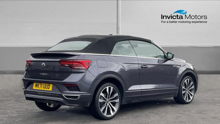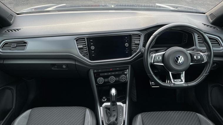 Features include Adaptive Cruise Control+Speed Limiter, Front+Rear Parking Sensors, Power Folding Mirrors, Drive Performance Modes and even Hill Hold Assist. Experience the perfect balance of sport, style, and sophistication in this 2021 Volkswagen T-Roc R-Line 1.5 TSI DSG. Finished in sleek Indium Grey Metallic, this compact convertible-SUV commands attention from every angle, combining bold R-Line styling with a refined, athletic stance. Its striking design is complemented by LED headlights and taillights, signature R-Line bumpers, and eye-catching diamond-cut alloy wheels that give it undeniable road presence. Step inside and you'll find a premium interior crafted for both comfort and excitement. The cabin features R-Line sport seats in half leather and cloth, a flat-bottomed multifunction steering wheel, brushed aluminium inlays, and ambient interior lighting that sets the perfect mood. The fully digital cockpit, 8-inch touchscreen infotainment system with Apple CarPlay and Android Auto, and voice control keep you seamlessly connected on every journey. Powered by Volkswagen's responsive 1.5-litre TSI turbocharged petrol engine paired with a 7-speed DSG automatic transmission, the T-Roc R-Line delivers a smooth yet spirited drive. With 150PS of power, Active Cylinder Management for improved efficiency, and selectable drive modes, it's built to performwhether you're cruising through town or tackling winding country roads.