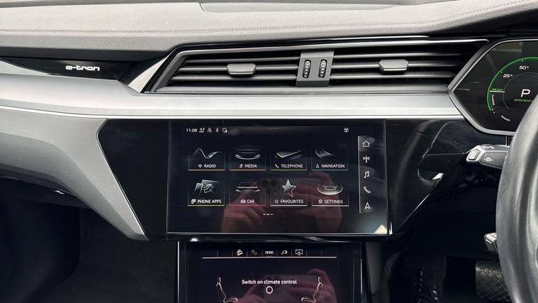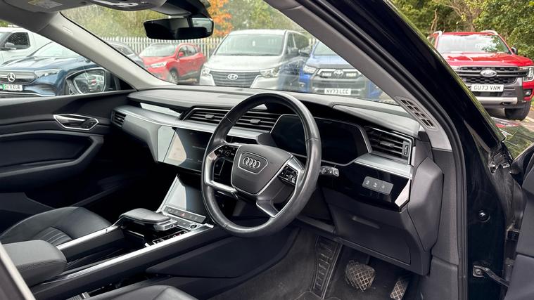 Features include Front+Rear Sensors wa Rear Camera, Lane Assist, Cruise Control+Speed Limiter, LED Lights wDusk+Rain Sensors and even a Powered Boot. Experience the future of electric luxury with this 2021 Audi e-tron Technik 71kWh, finished in sleek and sophisticated Mythos Black Metallic. Designed with Audi's unmistakable attention to detail, this fully electric SUV combines timeless elegance with cutting-edge technology. Its bold Singleframe grille, sculpted lines, and signature LED lighting create an unmistakable presence, while the Mythos Black paint adds a refined and commanding edge. The result is an electric vehicle that looks every bit as powerful as it feels. Step inside and you're welcomed into a beautifully crafted cabin that blends modern design with supreme comfort. The interior features premium leather upholstery, heated and electrically adjustable seats, and an intuitive dual touchscreen layout that puts control at your fingertips. Ambient interior lighting, a full digital Audi Virtual Cockpit, and soft-touch materials throughout elevate the driving experience to first class. The e-tron's quiet cabin, advanced sound insulation, and solid build quality make every journey feel calm, composed, and effortlessly luxurious. Powered by a 71kWh battery and twin electric motors, the Audi e-tron Technik delivers up to 190 miles (WLTP) of all-electric range with instant torque and smooth, silent acceleration. The quattro all-wheel-drive system ensures outstanding traction and stability in all conditions, while adjustable regenerative braking and multiple drive modes let you tailor performance and efficiency to your style. Charging is quick and convenient, with rapid DC charging capable of reaching 80 in around 30 minutes, making this SUV as practical as it is powerful.