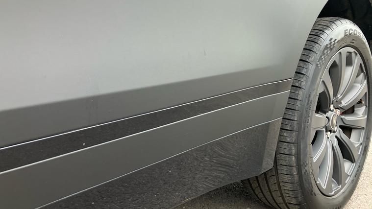 stunning looking Velar wrapped in satin grey, a unique car . Discover the epitome of sophistication and adventure with the 2018 Range Rover Velar 2.0 D240 R-Dynamic S. This remarkable SUV blends timeless elegance with cutting-edge technology. Wrapped in a sleek satin grey metallic, revealing a subtle metallic black original color, it commands attention on every journey. Glide beneath the expansive panoramic roof and enjoy the luxury of black leather interior. With striking black alloys and a full service history, this Velar is built for those who seek refinement and performance. At 63, 717 miles, it's poised for new horizons. Be the driver who redefines boundaries. Test drive the extraordinary today.