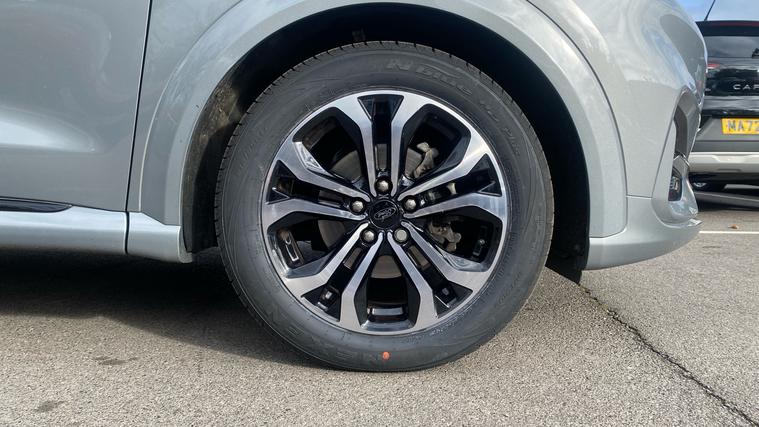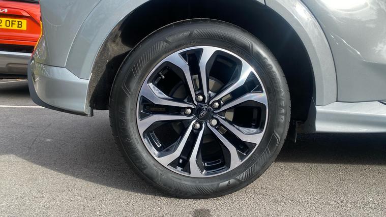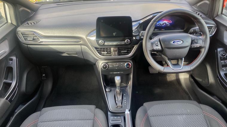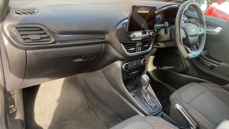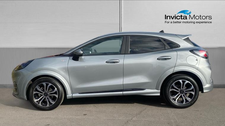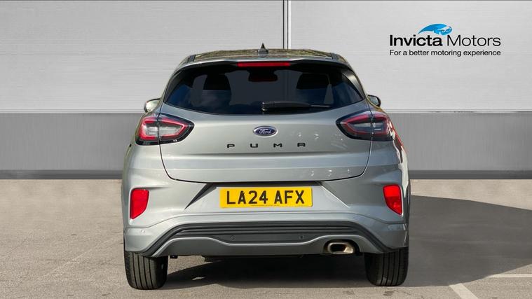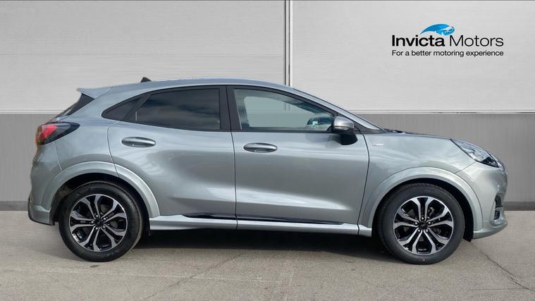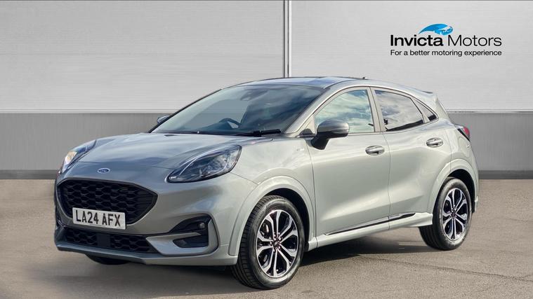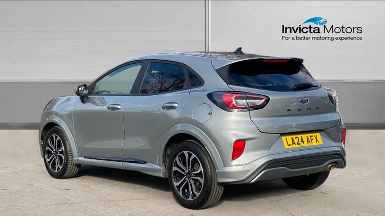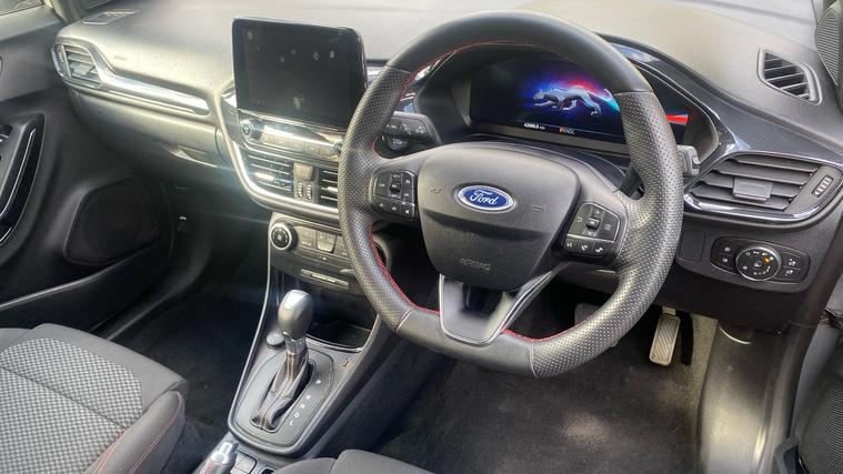 The 2024 Puma ST-Line 125 DCT offers sporty styling, excellent tech and real comfortan ideal choice for those who want a compact SUV with premium feel and smarter features. The 2024 Ford Puma ST-Line combines sleek sporty styling, advanced mild-hybrid tech, and upscale convenience features. Under its ST-Line trim you'll find body-colour bumpers, a distinctive grille, LED daytime running lights. Inside, highlights include a full 12.3-inch digital instrument cluster, landscape touchscreen with Ford SYNC navigation and wireless Apple CarPlay / Android Auto, a Quickclear heated windscreen, rear parking sensors with a rear-view camera, power-folding heated mirrors, and the ST-Line flat-bottom steering wheel with red contrast stitching. Comfort is lifted by ST seats, ambient lighting, selectable drive modes (Normal, Eco, Sport, Slippery + Trail), and many safety assists such as pre-collision AEB, lane-keeping aid, auto headlights with high beam, rain-sensing wipers and a driver impairment monitor. The mild hybrid system adds fuel economy. It's a stylish compact SUV that delivers solid tech, comfort, and refinement.