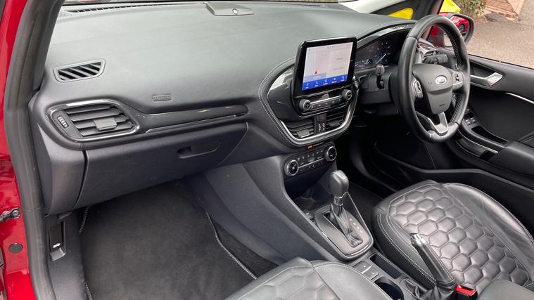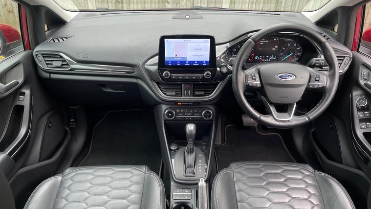 A stunning Ruby Red Fiesta Vignale Edition with just over 10, 000 miles. Never lose your way again with the inbuilt Sat Nav, plus this Fiesta is fitted with Heated Front Seats, Automatic Headlights, Rain Sensing Wipers, Cruise Control, Lane Keeping Aid, Ford SYNC3 Bluetooth, Rear Parking Sensors with Rear Camera, One-Touch Electric Front Windows, a Heated Windscreen, Air Conditioning and a DAB Radio with USB in.