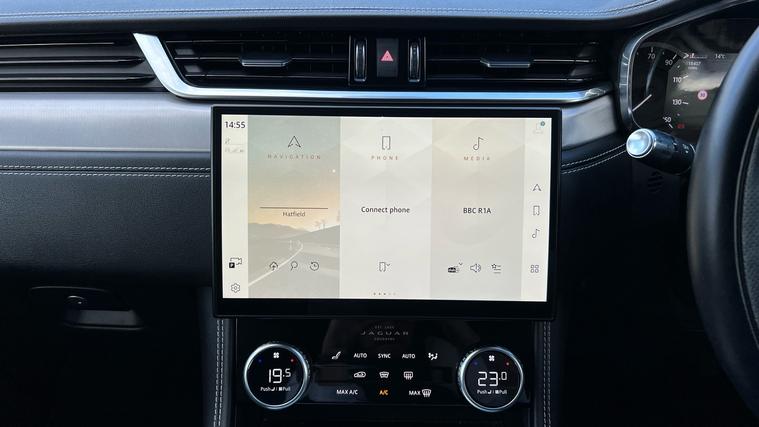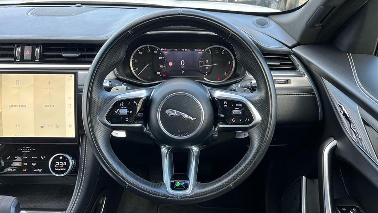 Our fantastic Jaguar F-Pace is presented in a stunning specification with a great range of brilliant features and optional extras, complimenting a sublime drive. Our F-Pace R-Dynamic S is finished in Fuji White matched with 19-inch Style 5038 wheels in Diamond Turned finish, over Ebony Grained leather interior, and comes equipped with some brilliant features and optional extras, including, 12-way Heated front seats, Heated Steering Wheel, Two-zone Climate Control, Privacy Glass, Premium LED Headlights with Signature DRL, Cruise Control and Speed Limiter, Lane Keep Assist, Front and Rear Parking Aids, Rear Camera, Apple CarPlay and Android Auto, DAB Radio, and much more. Call today for more information.