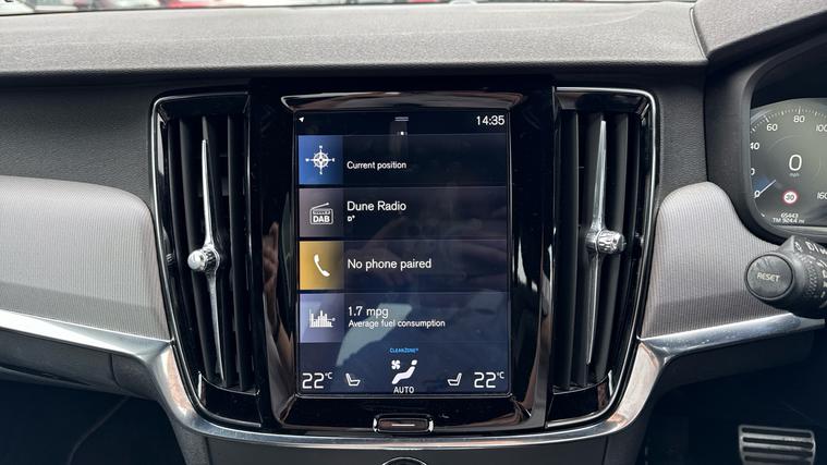 Features include Lane Assist, LED Lights wDusk+Rain Sensors, Power Folding Mirrors, Cruise Control+Speed Limiter and even Heated Front Seats. Command the road in Scandinavian style with the 2018 Volvo S90 R-Design D4, finished in striking Onyx Black Metallic. This executive saloon blends Volvo's signature elegance with sporty flair, delivering refined performance, luxury comfort, and cutting-edge technology. Under the bonnet, the 2.0-litre D4 diesel engine produces 190PS, paired with an 8-speed automatic gearbox for smooth, confident acceleration and exceptional efficiency. With Drive Mode Select and dynamic R-Design suspension, every journey feels poised, precise, and effortlessly comfortable. The R-Design trim amplifies the S90's sleek lines with aggressive styling cues - including unique front and rear bumpers, gloss black grille, 18-inch diamond-cut alloy wheels, dual exhaust outlets, and R-Design badging. The result is an executive saloon that looks every bit as powerful as it feels. Inside, Volvo's minimalist luxury shines through. The R-Design sports seats in Nubuck and leather, metal mesh inlays, charcoal headlining, and aluminium pedals create a driver-focused cockpit with true premium appeal. Tech is front and centre with Volvo's 9-inch Sensus touchscreen, digital driver's display, satellite navigation, Bluetooth and a premium sound system.