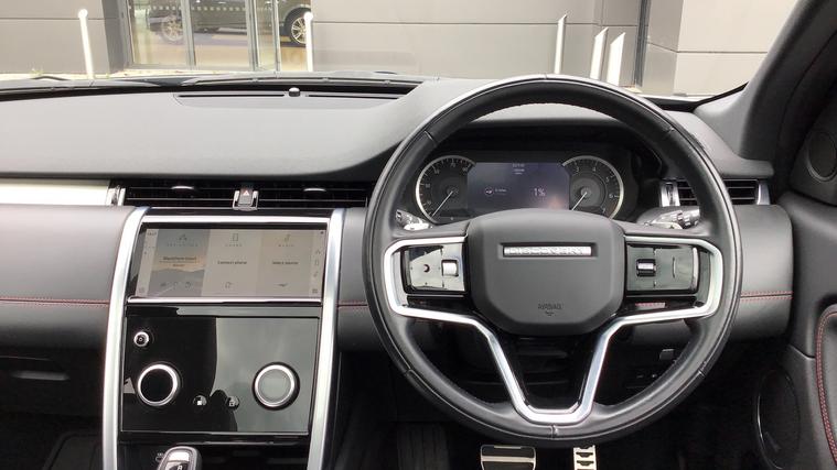 Great looking and high equipment level Discovery Sport HSE, offered in a desirable colourway. Eiger Grey with Interior Ebony, 20 inch Alloys 5 split-spoke Style 5089 Gloss Black finish, Black contrast roof, Black Exterior Pack, Black roof rails, Click and Go integrated base unit.