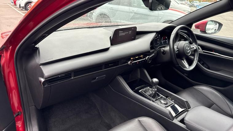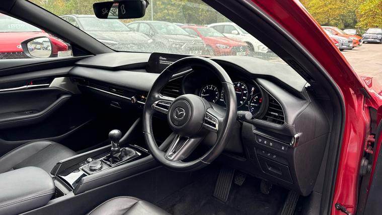 Features include Adaptive Cruise Control+Speed Limiter, Lane Assist, a Rear Parking Camera, a Head Up Display, Power Folding Mirrors and even Keyless Entry+Go. Experience pure driving pleasure in this 2022 Mazda3 e-Skyactiv X GT Sport, finished in stunning Soul Red Crystal Metallic, a colour that perfectly captures Mazda's design philosophy of movement and emotion. This striking hatchback combines bold, flowing lines with refined details, giving it a confident and sophisticated presence on the road. From its sculpted bodywork and gloss black accents to its 18-inch alloy wheels and LED headlights, every inch of the Mazda3 exudes style and craftsmanship. Step inside and you're greeted by a driver-focused cockpit that blends minimalist Japanese design with premium materials. The GT Sport trim elevates the experience with luxurious leather upholstery, heated front seats, a heated steering wheel, dual-zone climate control, and an elegant blend of soft-touch surfaces throughout. The 8.8-inch Mazda Connect infotainment system offers seamless connectivity with Apple CarPlay and Android Auto, while the Bose 12-speaker surround sound system delivers crystal-clear audio that enhances every journey. Under the bonnet lies Mazda's revolutionary 2.0-litre e-Skyactiv X petrol engine, producing 186PS. It uses innovative compression ignition technology to combine the power of a petrol engine with the efficiency of a diesel, supported by mild hybrid (MHEV) technology for smoother performance and improved fuel economy. Paired with a precise 6-speed manual gearbox, the Mazda3 offers a truly engaging driving experience - responsive, balanced, and refined.
