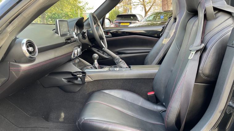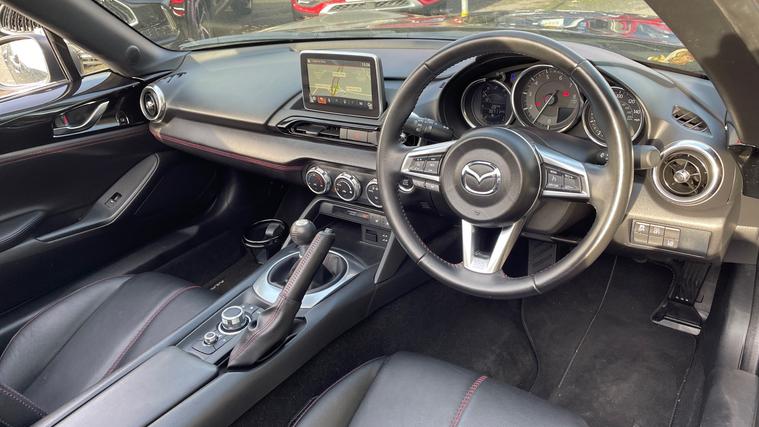 Wow what great value and fun all packaged in one, this MX5 Sport Nav looks great also in metalic Black. Discover pure driving joy with the Mazda MX-5 2.0 Sport Nav 2dr, where style meets sophistication. The instinctive bond between car and driver is electrified with cutting-edge features tailored for the modern adventurer. Effortlessly navigate with the sleek integrated navigation system, while the precisely tuned electric power steering lends a seamless connection to the road. Revel in comfort with heated leather seats, and let the crisp audio system elevate your journey. This is more than a roadster; it's an embodiment of passion and performance. Experience the thrill that awaits with the Mazda MX-5, and redefine your drive.