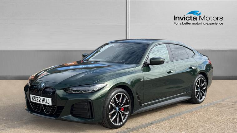 This 2022 BMW i4 250KW M Sport Gran Coupe is in the very popular San Remo Green Metallic with the Charcoal M Sport Leather. This car also has Park Assist Plus and M Sport Pro Pack. Call today!!!. Experience the thrill of this 2022 all-electric BMW i4 250kW eDrive40 M Sport. With the M Sport Pro Pack, revel in the luxury of M Sport leather and state-of-the-art climate control. Navigate your world effortlessly with HD quality wide screen Sat Nav and Carplay, while Park Assist Plus makes parking a breeze with a 360 Camera. Stay in control with cruise control, and always be road-ready with two charging cables. The BMW i4 seamlessly blends performance with innovative technology, offering a drive that's as exhilarating as it is efficient. Discover the future of driving, all wrapped in the iconic, bold styling you've come to expect from BMW.