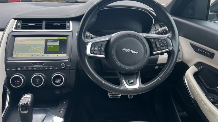 Desirable colour combination and high equipment level E Pace HSE with the added Panoramic Glass Sunroof. Experience the exhilarating blend of power and elegance with the Jaguar E-PACE 2.0d 240 R-Dynamic HSE. Dressed in the sophisticated allure of Silicon Silver premium metallic, this SUV delivers a dynamic driving experience like no other. Glide through urban landscapes with seamless agility, boasting finely tuned precision. Inside, luxury beckons with meticulously crafted details and cutting-edge technology. Feel the robust performance of the 240-horsepower turbo diesel engine, combining efficiency with breathtaking power. This isn't just a drive; it's a statement. Discover refinement, discover Jaguar. Indulge in the E-PACE, where every journey is extraordinary.