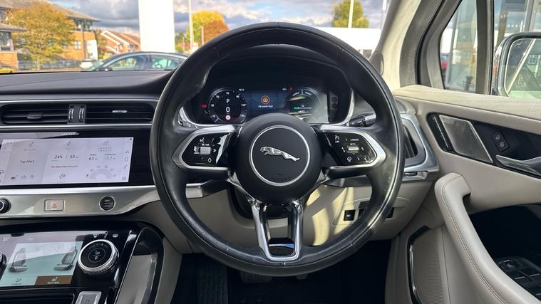 Low mileage all electric I Pace offered in a desirable colourway. Fitted with Panoramic Roof, Navigation, Parking Sensors, Climate Control, Leather Trim, 20 inch Alloy Wheels, Privacy Glass.