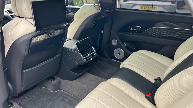 Bentayga Extended Wheelbase Mulliner the pinnacle of Bentley specification . Bentayga Extended Wheelbase Mulliner 4.0 V8 including Bentayga Blackline Specification, Naim sound For Bentley, Rear Seat Entertainment and finished in Black Sapphire.