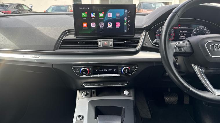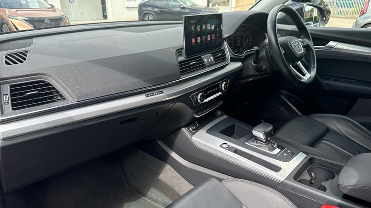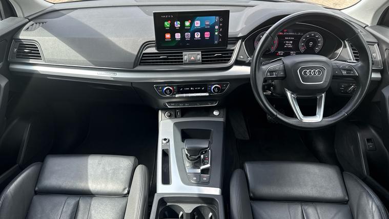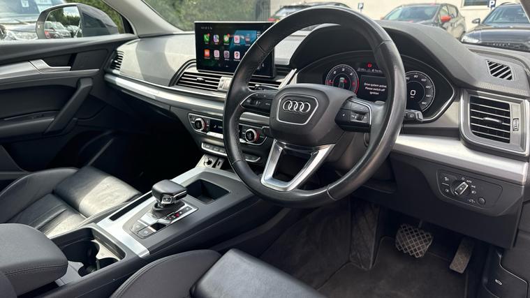 Introducing the Audi Q5 Quattro Sport Auto. This 1 Owner SUV is the perfect combination of luxury and practicality. Call our friendly sales team today to arrange a test drive. Our Audi Q5 Quattro Sport Auto has just 1 Previous Owner and looks great in Mythos Black Metallic. Make every journey suit you with Audi Drive Select. Lane Assist, Cruise Control and Navigation make it effortless. With Wireless Apple Carplay, you can stay seamlessly connected. The Power Tailgate is incredibly convenient and a must-have on this luxury SUV. Experience maximum visibility with Auto Lights and Wipers and Heated Door Mirrors. Twin Leather Upholstery is incredibly comfortable, especially with Heated Seats and Deluxe Climate Control! The Q5 High Gloss Pack transforms this car into a sleek SUV. Visit us today to test drive the Audi Q5 Quattro Sport Auto!.