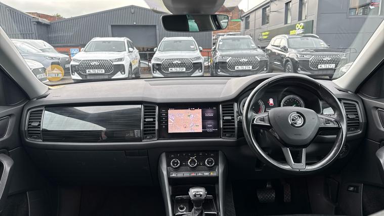 Features include Lane Assist, Dusk+Rain Sensors, Rear Parking Sensors a Powered Boot, Power Folding Mirrors, Keyless Entry+Go and even Hill Hold Assist. Powerful, refined, and family-ready this 2017 Skoda Kodiaq Edition 4x4 2.0 TDI 190PS DSG, finished in stunning Black Magic Metallic, combines premium design, advanced technology, and rugged capability in one elegant SUV. With its confident stance, bold grille, chrome detailing, and striking LED headlights, the Kodiaq exudes sophistication while offering the practicality and performance every family SUV should deliver. Inside, the Kodiaq Edition impresses with its spacious, high-quality cabin and exceptional attention to detail. The 8-inch touchscreen infotainment system with navigation, DAB radio, Apple CarPlay, and Android Auto ensures seamless connectivity. Tri-zone climate control and a digital driver display further enhance comfort and convenience. Under the bonnet, the 2.0-litre TDI diesel engine produces 190PS, paired with the smooth and responsive DSG automatic gearbox and intelligent 4x4 system. Together, they deliver confident performance, refined power, and impressive towing capability. The Kodiaq offers composed handling, a quiet ride, and excellent efficiency, making it equally at home on the motorway or off the beaten track.