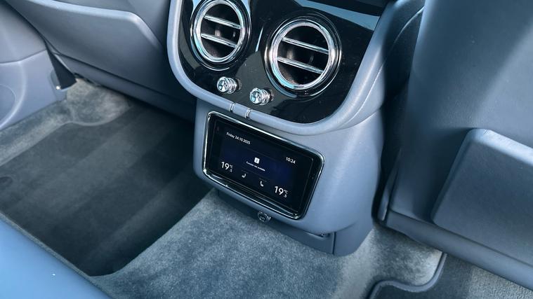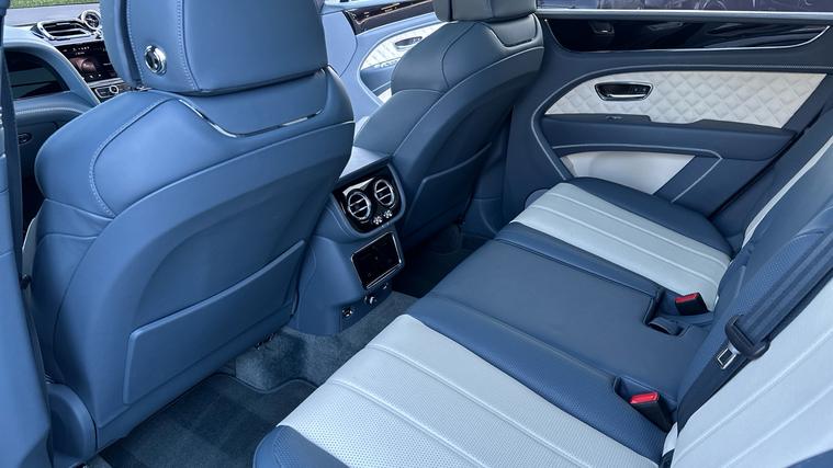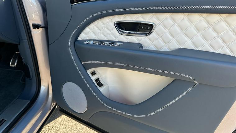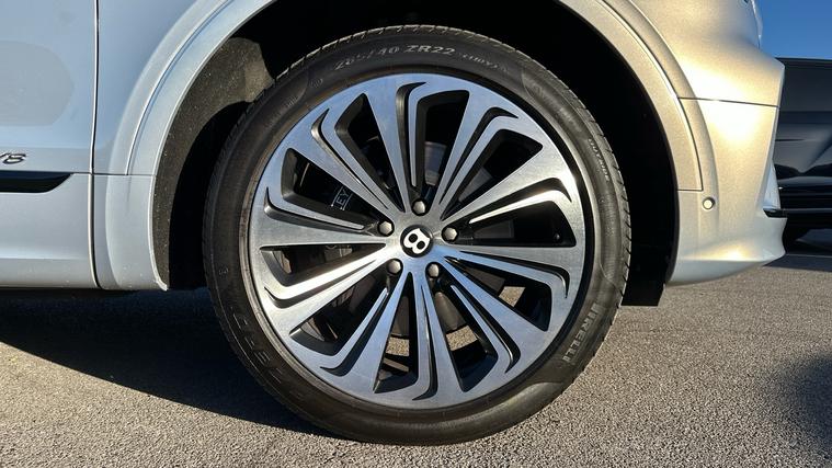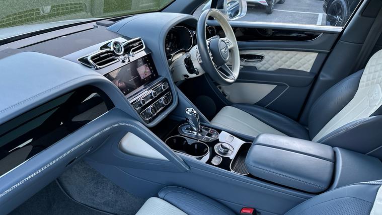 Bentley Bentayga 4.0 V8 in Extreme Silver with an interior of Linen and Brunel. Mulliner Driving Specification with 22 Black Painted and Bright Machined Wheel, Touring Specification, City Specification, Panoramic Sunroof, Front Seat Comfort Specification, Bentayga Blackline Specification, Heated, Acoustic, IR Front Screen, Rear Privacy Glass (with Acoustic Side Glazing), Heated, Duo Tone, 3 Spoke, Hide Trimmed Steering Wheel, Mood Lighting, Parking Heater, Bentley Dynamic Ride, Extended Range - Solid and Metallic, Hand Cross Stitching, LED Welcome Lamps - By Mulliner.