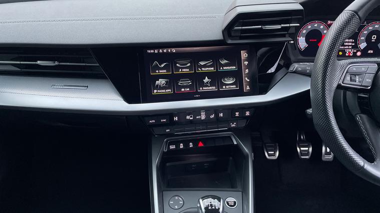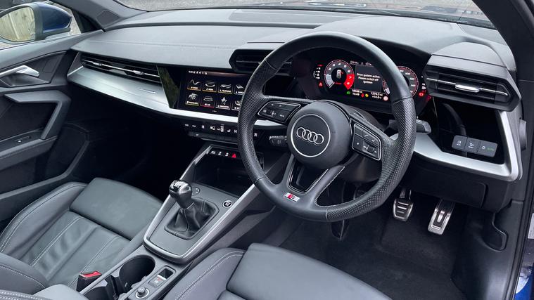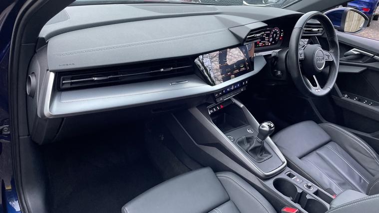 A stunning Audi A3 S-Line finished in the metallic Navarra Blue. Elevate your driving experience with the Audi A3 30 TFSI S Line 5dr, where innovation meets elegance. Navigate the city streets with ease, guided by intuitive navigation and supported by rear parking sensors. Cruise in style with advanced cruise control and never miss a beat with the crystal-clear sound of DAB radio. Seamlessly integrate your digital world with Apple CarPlay and Android Auto, ensuring every drive is connected and effortless. The Audi A3 S Line is not just a vehicle; it's a statement of modern sophistication and intelligent design. Discover a drive that's distinctly Audi.