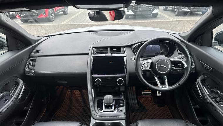 Great looking and sporty E Pace offered in excellent condition throughout and with fixed side steps. 11.4 touchscreen with central ICP, 12.3 full digital instrument panel, ABS, Adaptive cruise control, All surface progress control (ASPC), Android Auto, Apple car play, Auto high beam assist, Automatic headlights, Blind spot assist, Bluetooth connectivity including audio streaming, Configurable dynamics, DAB digital audio broadcast, Driver condition monitor, DSC - Dynamic Stability Control, Dynamic volume control, Electric front/rear windows with one touch/auto up/down, Electric heated/power fold memory door mirrors with approach lights and auto dimming driver side, Electric power assisted steering, Emergency brake assist, Enhanced ambient lighting, Front and rear parking aid, Heated windscreen, Jaguar drive control with adaptive surface response, Jaguar script and leaper, Rain sensor windscreen wipers, Rear collision monitor, Rear traffic monitor, Remote central locking, Satin black grained front outer grille, Satin chrome gearshift paddles, Sunvisors with illuminated vanity mirrors, Torque vectoring brake, Traffic sign recognition with adaptive speed limiter, Trip computer, Twin exhaust tailpipe, Twin front cupholders, Two zone climate control, Tyre pressure monitoring system, Variable front intermittent wipers, Voice control system, Fixed Side Steps.
