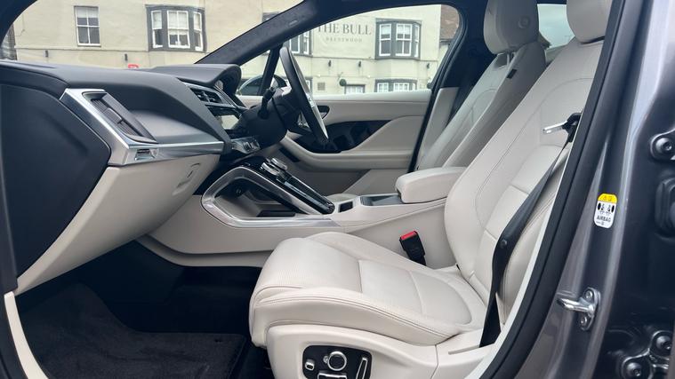 Stunning high specification and all electric I Pace, offered in a desirable colourway. Finished in Eiger Grey Metallic with Light Oyster Hide Seats. 22 inch Alloy Wheels, Panoramic Glass Sunroof, Black Exterior Pack, Privacy Glass. This car is part of our own internal fleet and is in daily use, so the mileage may differ slightly from the one listed. Call now for the full details and the availability of this car.