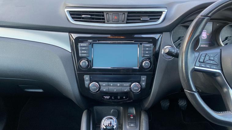 The 2019 Qashqai 1.5 dCi Tekna delivers luxury touches, smart technology and comfort from front to back. An SUV that feels premium and thoroughly equipped. The 2019 Nissan Qashqai 1.5 dCi 115 Tekna 5-door is generously equipped with high-end comfort and smart tech. It features a panoramic glass sunroof, part-leather upholstery, ambient interior lighting, dual-zone climate control, and heated + electric front seats. The infotainment system offers Apple CarPlay/Android Auto preparation, a 7 touchscreen navigation integrator, Bluetooth connectivity, a 5 TFT driver display, and a premium Bose audio system. Exterior and convenience touches include a power-operated tailgate, 19 alloy wheels, LED daytime running lights, heated and auto-folding door mirrors, privacy glass, chrome window surround, auto wipers and lights, and front + rear parking sensors with a 360 Around View Monitor for added ease. On the safety front you'll find intelligent emergency braking with pedestrian recognition, traffic sign recognition, lane departure warning, and the full Safety Shield + suite.