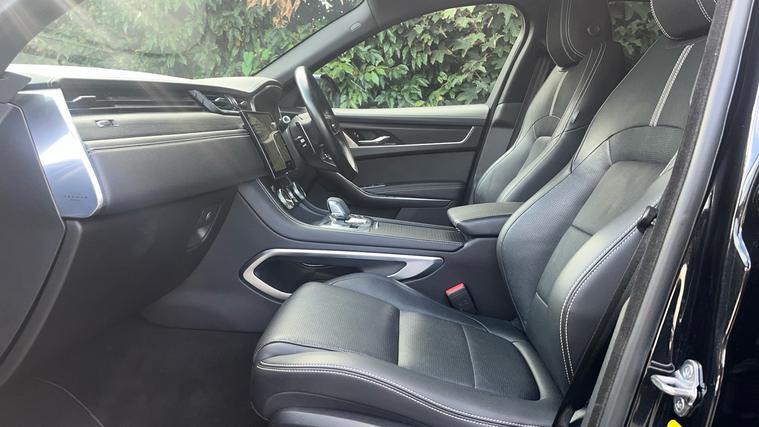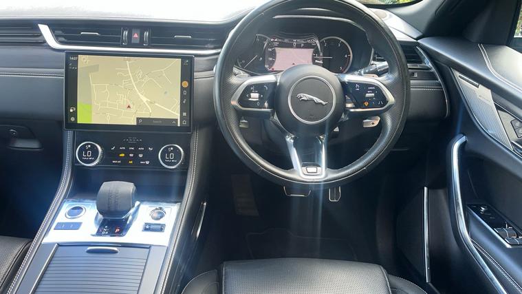 The 2022 F-PACE R-Dynamic Black combines refined materials, smart tech and standout design into one impressive SUV. Truly premium in every detail. The 2022 Jaguar F-PACE 2.0 D200 R-Dynamic Black blends premium styling and luxury features with smart technology throughout. Inside, you'll discover heated leather-trim seats, ambient cabin lighting, a panoramic glass roof for a bright, open feel, and a full digital driver display paired with a touchscreen infotainment system. Outside, distinct gloss-black exterior touches include roof rails, rear privacy glass, 20 gloss-black alloy wheels, privacy glass and LED signature headlights. Convenience and safety are covered with front + rear parking sensors plus 360 camera, keyless entry/start, and driver assistance features like lane-keep and traffic-sign recognition. Every element delivers elegance and modern comfort wrapped in a sporty SUV body.