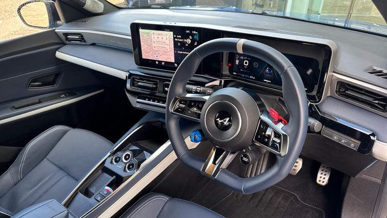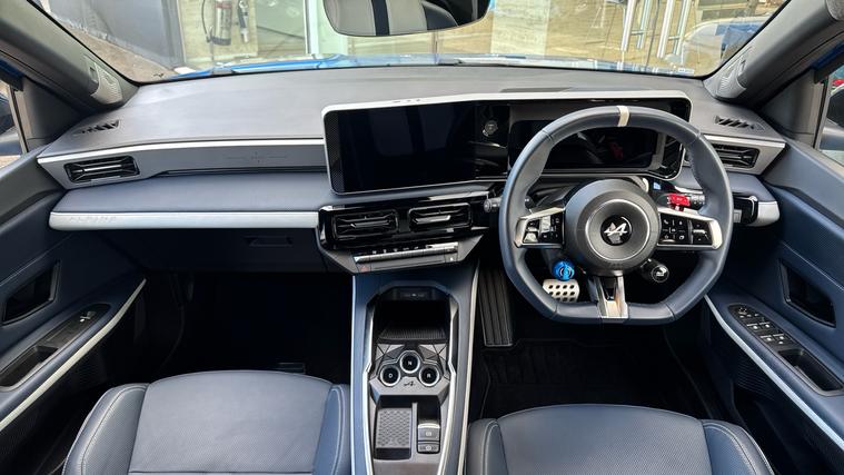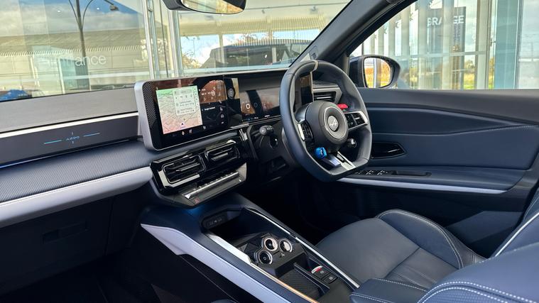 Ex Demonstartor available for immediate delivery saving 3000 pounds on cost new. Finished in Alpine Vision Blue with Contrast Black Roof Alpine Grey Blue Nappa Leather sports seats 19 inch Gloss Black Snowflake style alloys Devialet Sound sytem Rouge brake callipers Google multimedia Heated steering wheel Heated seats High beam assist.