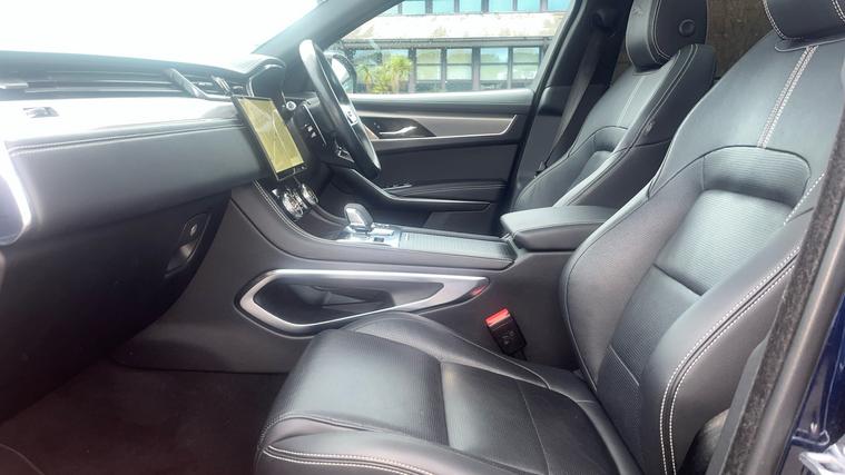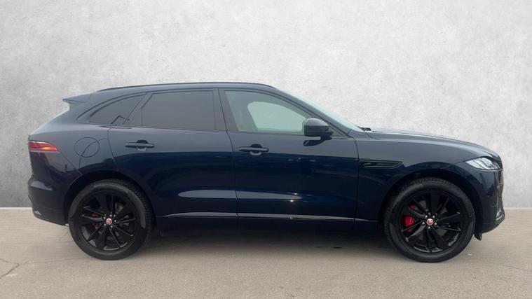 Lovely low mileage F Pace, supplied and serviced by Grange from new. Finished in Portofino Blue Meatllic with a coordinating Hide interior. 20 inch Black Alloy Wheels, Privacy Glass, Panoramic Glass Sunroof, Black Exterior Pack, Animated Directional Indicators, Auto High Beam Assist.