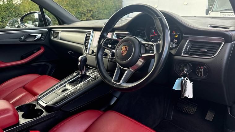 This 2017 17 plate Porsche Macan is in excellent condition. Black with Red Leather it is a real eye catcher. It features - Climate Control, Soft Leather, Porsche Towbar, Bluetooth and Rear Camera. Unleash the road's potential with the Porsche Macan 2.0T. With its formidable 252hp engine paired with a seamless PDK Auto transmission, this SUV doesn't just drive it conquers. Inside, indulge in the luxurious Red Sports Leather with 14 way Electric Seat Comfort Pack with Memory. Experience unwavering comfort with advanced Navigation Module PCM and 3 Zone Climate Control, ensuring your drive is always tailored to perfection. This car also features a Porsche Tow Bar, Privacy Glass, Lane Keeping Aid, Rear Camera, Crested Headrests, Heated Front Seats, auto Dimming Mirrors and Privacy Glass. Every curve, every detail speaks the language of performance. Elevate your driving experience with the Porsche Macan where sophistication meets unrivaled athleticism. Discover a new standard in luxury and power. Experience Porsche. Drive the best.