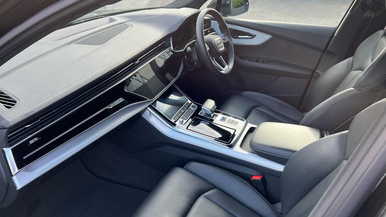 A stunning Audi Q7 S Line finished in the metallic Mythos Black. Experience the unrivaled excellence of the Audi Q7 55 TFSI Quattro S Line 5dr Tiptronic. Designed for those who demand more, it effortlessly combines power and sophistication. Navigate the road with precision, guided by cutting-edge technology. Revel in the comfort of heated seats, perfect for any journey. Cruise control offers you an effortless drive, while the driver's electric seat systems prioritize your comfort and command. The Q7 exudes elegance and performance, making every drive an experience in luxury. Drive the future now. Embrace the distinctive Audi spirit. Discover what drives you with the Audi Q7.