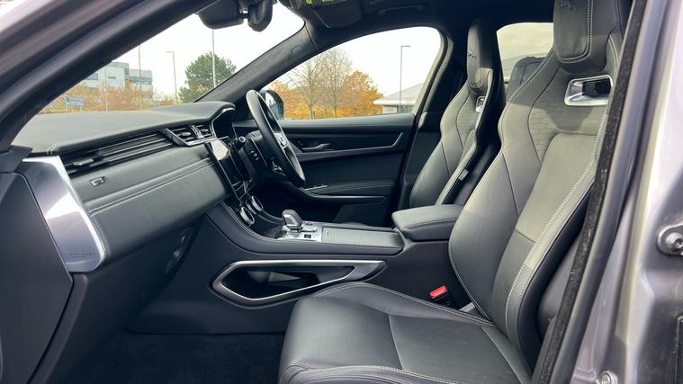 Our fantastic Jaguar F-Pace is presented in a stunning specification with a huge range of brilliant features and optional extras, complimenting a sublime drive. Our F-Pace R-Dynamic HSE Black is finished in Eiger Grey matched with the Black Exterior Pack and 21-inch Style 5104 wheels in Gloss Black, over Ebony Windsor leather interior, and comes equipped with some brilliant features and optional extras, including, 14-way Heated and Cooled front Performance seats with Memory function, Two-zone Climate Control, Meridian Sound System, Privacy Glass, Sliding Panoramic Roof, LED Headlights with Signature DRL, Keyless Entry, Adaptive Cruise Control, Lane Keep Assist, Blind Spot Assist, Front and Rear Parking Aids, Rear Camera, Apple CarPlay and Android Auto, DAB Radio, Wireless Device Charging, Electrically Deployable Tow Bar, and much more. Call today for more information.