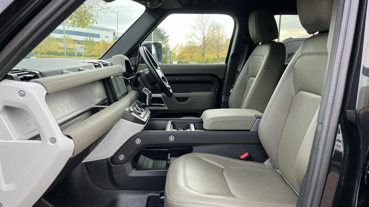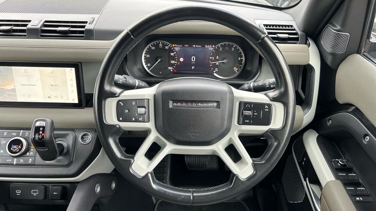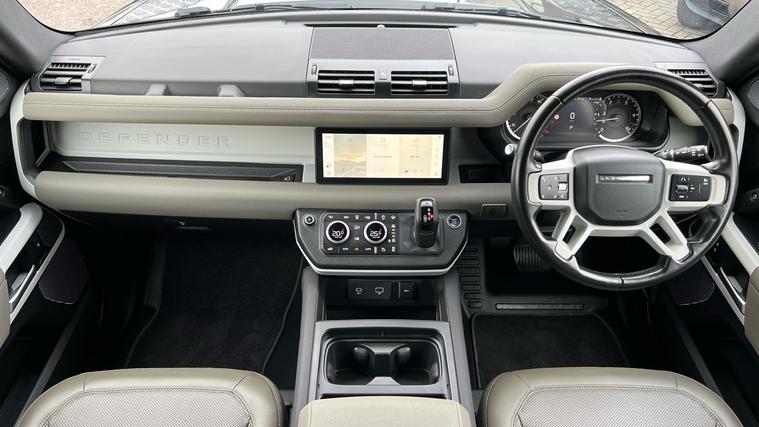 Our Brilliant Defender 110 is presented in a great specification, and comes equipped with some fantastic features and optional extras, ready to take on your next adventure. Our Defender 110 X-Dynamic S is finished in Santorini Black matched with the Extended Black Exterior Pack and 22-inch Style 5098 wheels in Gloss Black, over Khaki resist interior, and comes equipped with some great features and optional extras, including, 12-way semi-powered Heated front seats, Two-zone Climate Control, Meridian Sound System, Privacy Glass, Sliding Panoramic Roof, LED Headlights, Keyless Entry, Cruise Control and Speed Limiter, Lane Keep Assist, 360-degree Parking Aids, 3D Surround Camera, Apple CarPlay and Android Auto, DAB Radio, Air Suspension, Fixed Side Steps, and much more. Call today for more information.