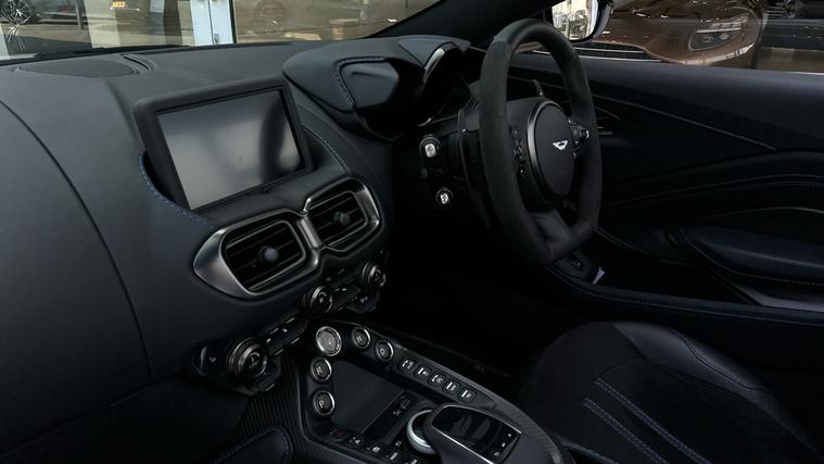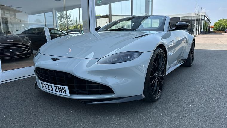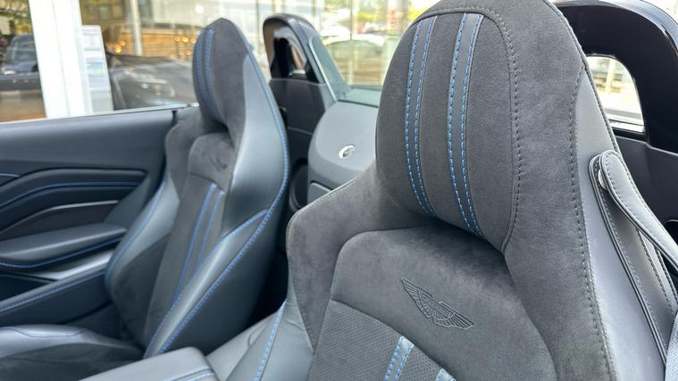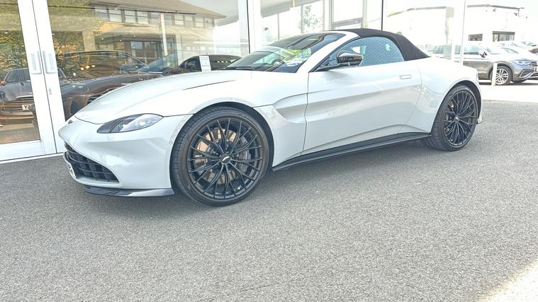Stunning Apex Grey Vantage Roadster with over 30K of Optional Extras, Warranty until 2026 and free servicing until 2028. Headturning Aston Vantage Roadster in stunning Apex Grey with Black Leather and Alcantara. Blue Stitch, Premium Audio, Perimiter Camera System, Black Vaned Grille, Tech Pack, Smoked Rear Lamps, Tracker, 21 Inch Satin Black Wheels, black wings badges. Aston Martin Premium Warranty until 2026, free servicing until 2028. Great finance plans and part exchange prices available.