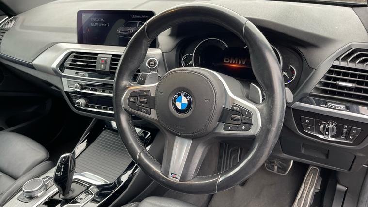 Our BMW X3 features Heated Front Seat, BMW Navigation, Park Assist with Reversing Camera, Powered Tailgate, and even Cruise Control with Speed Limiter. Unleash the power of precision with the BMW X3 xDrive20d M Sport, where performance meets luxury. Slide into Vernasca leather seats with contrast stitching, enveloped in style and comfort. Navigate effortlessly with the BMW Professional Navigation system on a 10.25-inch touch display. Stay connected with the BMW Connected Package Professional and enjoy seamless connectivity via Bluetooth. Experience pure driving pleasure with Performance Control and Park Assist technology. The Reversing Assist Camera and Heated Front Seats provide unparalleled convenience. Embrace the ultimate expression of driving excellence. Discover the BMW X3an SUV designed to turn every drive into an extraordinary journey.