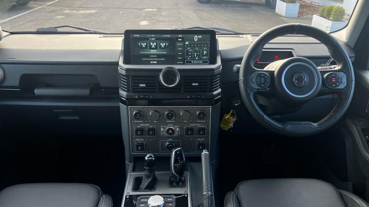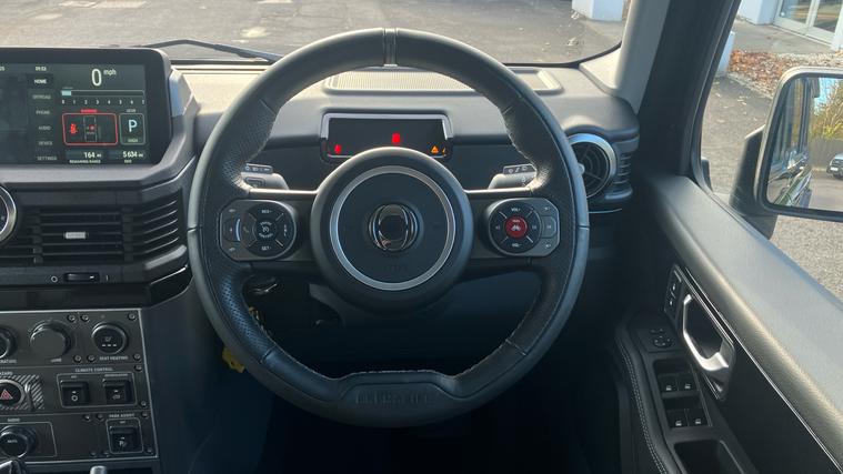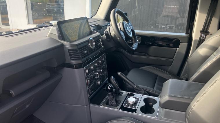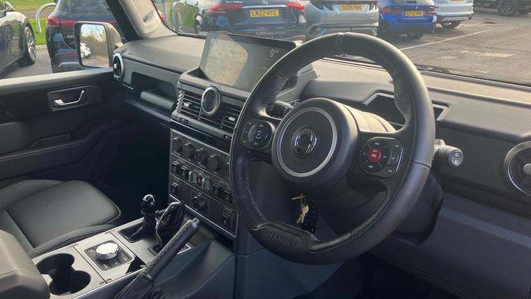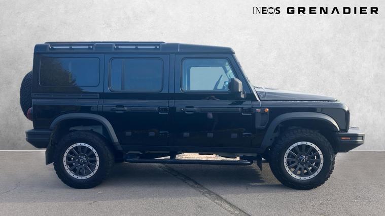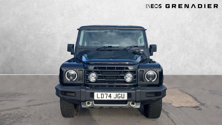 ex INEOS company car, loaded with spec and under 6000 miles and a substantial saving over cost new. Uncompromisingly capable. The 2024 INEOS Grenadier Fieldmaster Edition stands ready for any challenge. With only 5, 877 miles, this ex-INEOS staff vehicle boasts premium craftsmanship and unmatched reliability. Dressed in a striking Inky Black with a distinctive grey chassis, it commands attention on and off the road. Enjoy comfort with a carpeted interior, grey leather seats, and heated functionality. Its 18-inch alloy wheels and side steps ensure ruggedness with style, while safari windows offer expansive views of untamed landscapes. Recently serviced and expertly maintained, this petrol-powered powerhouse is your ultimate adventure companion. Seize the chance to master the terrain.