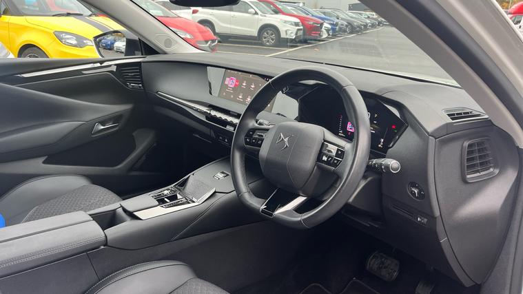 Features Include Cruise Control And Speed Limiter, Keyless Start, Dusk+Rain Sensors and Hill Start Assist. Sleek, distinctive, and undeniably stylish this DS 4 1.2 PureTech Bastille+ in stunning Pearl White redefines what a modern premium hatchback should be. With its bold design, cutting-edge technology, and luxurious French craftsmanship, the DS 4 stands out from the crowd, offering sophistication and comfort in every detail. Under the bonnet, the efficient 1.2-litre PureTech turbocharged petrol engine delivers a lively and responsive 130 PS, perfectly balanced with impressive fuel economy and low running costs. Whether you're gliding through the city or cruising on the motorway, the DS 4 offers a refined, quiet, and confident drive a testament to DS Automobiles' commitment to comfort and innovation. Inside, the Bastille+ trim creates a welcoming and modern atmosphere. The cabin is beautifully finished with premium materials, soft-touch surfaces, and chrome detailing, showcasing DS's attention to luxury. The advanced 10-inch touchscreen infotainment system features Bluetooth, Apple CarPlay, and Android Auto, keeping you seamlessly connected on every journey. You'll also enjoy a host of thoughtful features including climate control, rear parking sensors, DS Drive Assist safety systems, keyless start, and ambient interior lighting. Everything has been designed for comfort, convenience, and effortless style. On the outside, the Pearl White metallic paintwork complements the DS 4's striking design with its bold front grille, LED headlights, and sleek 19-inch alloy wheels giving it a truly premium presence on the road. This car doesn't just look elegant it feels it, from every angle.