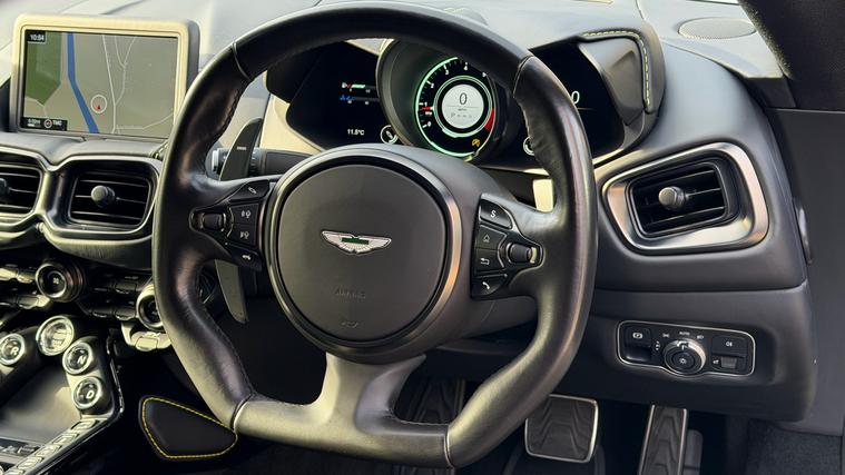 21inch Satin Black Alloys and Gloss Black Upper and Lower Exterior Packs on this 2022 Vantage Coupe in stunning colour combination and spec. Full Aston Martin Service History and 12 Months AM Warranty. Eyecatching Lightning Silver Aston Martin Vantage with contrasting Onyx Black Haircell Leather Trim and some amazing Optional Extras including 21inch Satin Black Alloy Wheels, Sports Plus Seats, Gloss Black Upper and Lower Exterior Packs, Smoked Tail Lights, Contrast Stitch, Privacy Glass, Vaned Front Grille, Ventilated Seats, Yellow Brake Calipers, Aston Martin Premium Audio and Aston Martin Black Script and Wings Badging. Full Aston Martin Service History with remainder of 5 Year Service Pack and 12 Months Aston Martin Premium Warranty.
