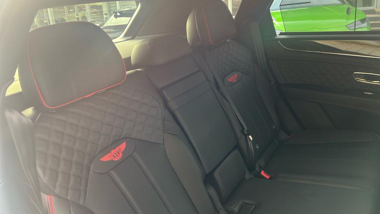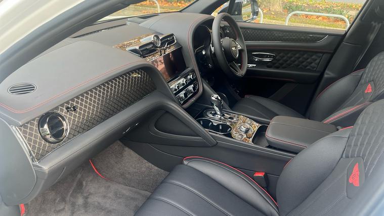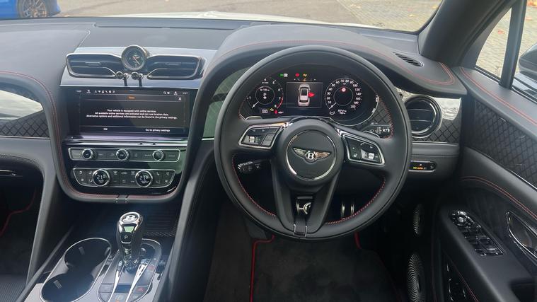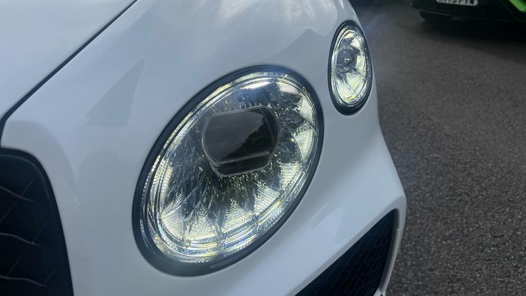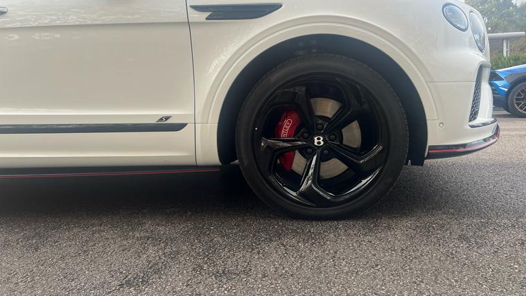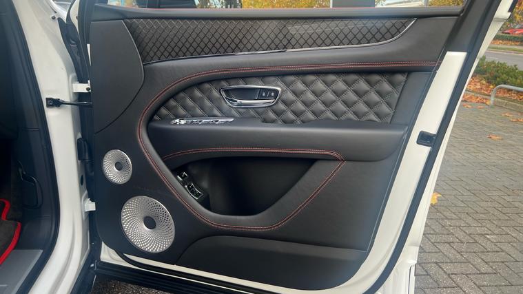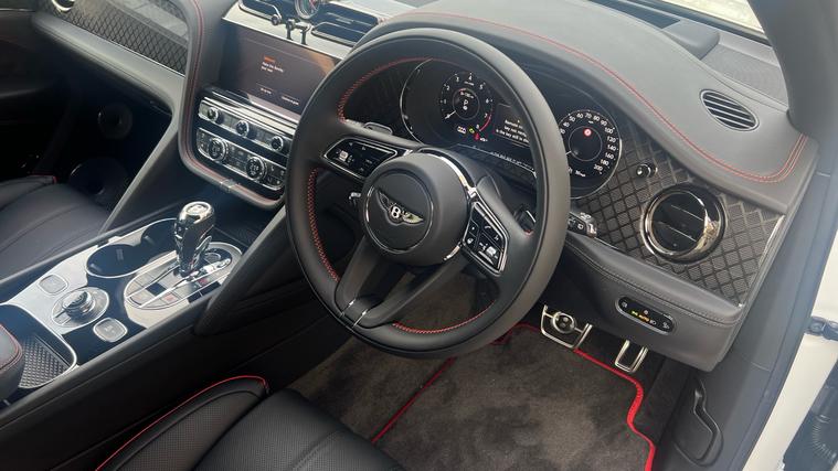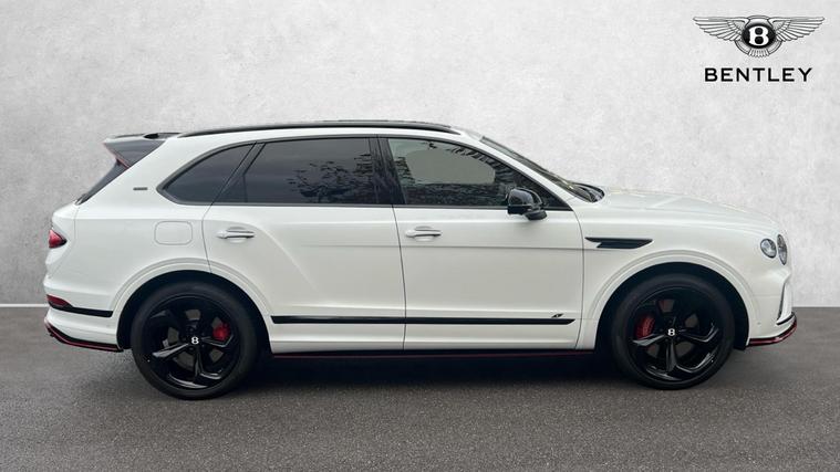 VAT Qualifying Bentley Bentayga 4.0 V8 S Black Edition in Snow Quartz Pearlescent with a Beluga Leather interior. Black Edition Specification, Mulliner Range - Pearlescent and 3 Coat Finishes, LED Welcome Lamps, Touring and City Specification, Heated, Acoustic, IR Front Screen, Jewel Fuel and Oil Filler Caps, Rear Acoustic Privacy Glass, Sports Pedals, Battery Charger - UK Adaptor, Mood Lighting, Bang + Olufsen for Bentley, Leather Specification - S, Self Levelling Wheel Badge - by Mulliner.