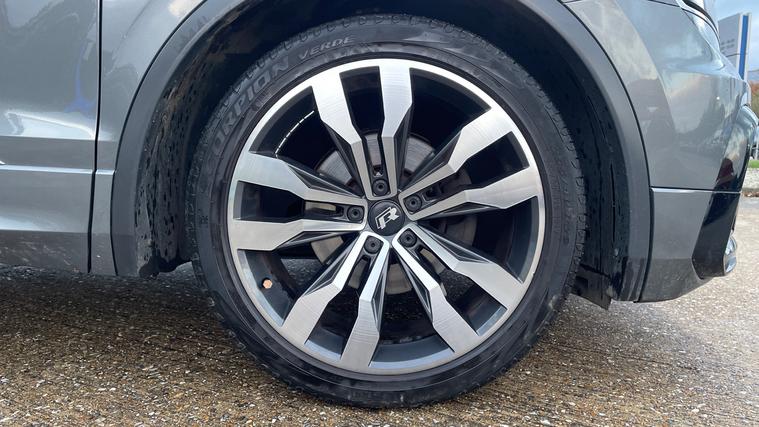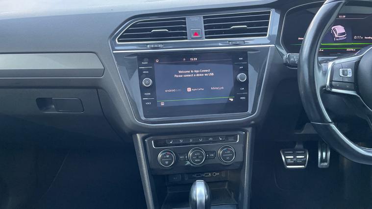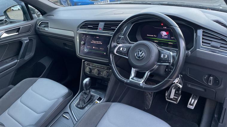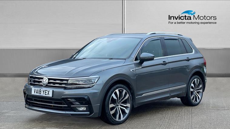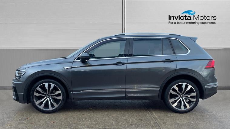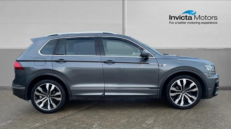 A sporty VW Tiguan R Line finished in the metallic Indium Grey . Discover the Volkswagen Tiguan 2.0 TDi 150 R-Line 5dr DSG, where style meets innovation. Glide on striking 20-inch alloys, savor the warmth of heated seats, and immerse yourself in the crystal clarity of a 12.3 inch Active Info Display. Navigate the world through the intuitive 8 inch touchscreen, while the panoramic sunroof invites the sky inside. Stay relaxed with adaptive cruise control and park effortlessly with front and rear sensors. The Tiguan isn't just a car; it's your new adventure partner. Experience driving redefined, with Volkswagen's signature blend of elegance and practicality. Your journey begins here.