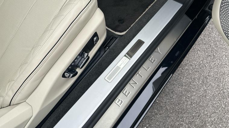 Huge specification Bentley GTC V8 with only 7683 miles and a full Bentley service history. Mulliner Driving Specification with Black Painted Wheel - Exclusive to Continental Black, Touring Specification, City Specification, Front Seat Comfort Specification, Continental Blackline Specification, Chrome Pinstripe to Fascia and Door Waistrails, Deep Pile Overmats - Front, Bang + Olufsen for Bentley, Bentley Rotating Display, Remote Controlled Garage Door Opener, Decorative Insert for Console - Cotes de Geneve, Bentley Dynamic Ride, Inductive Phone Charger, Standard Brakes with Red Painted Calipers, Contrast Binding to Carpet Overmats, Contrast Stitching and Seat Piping. Full Bentley Exterior Carbon Spec .