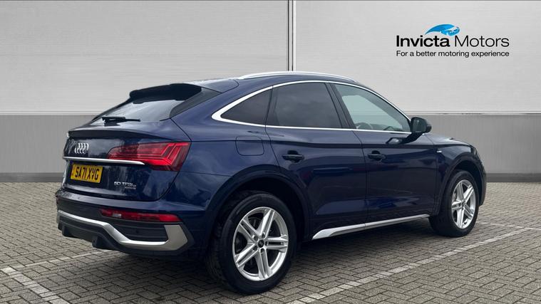 Invicta Doves are plased to offer this 2021 Audi Q5 Sportback Plug In Hybrid 50 TFSI E Quattro 5 Dr Auto. This car features low mileage, 1 owner and Comfort and Sound Pack. Call us today!. Discover the perfect blend of elegance and innovation with this 2021 Audi Q5 Sportback 50 TFSI e Quattro Plug In Hybrid S Line 5 Door Auto. This plug-in hybrid redefines efficient luxury, featuring a seamless petrol-electric drive. Navigate with confidence using the 360 Surround Camera and stay connected through Apple CarPlay and Android Auto. Embrace comfort with the exclusive Comfort Pack, while the Sound Pack transforms every journey into a concert. With striking alloys and a sleek Sportback Coupe design, every detail is crafted for sophistication. Experience advanced performance and style tailored for the modern enthusiast. Elevate your drive with Audi's commitment to excellence.