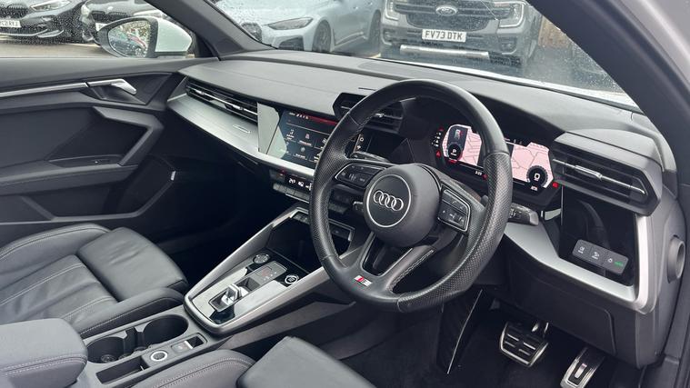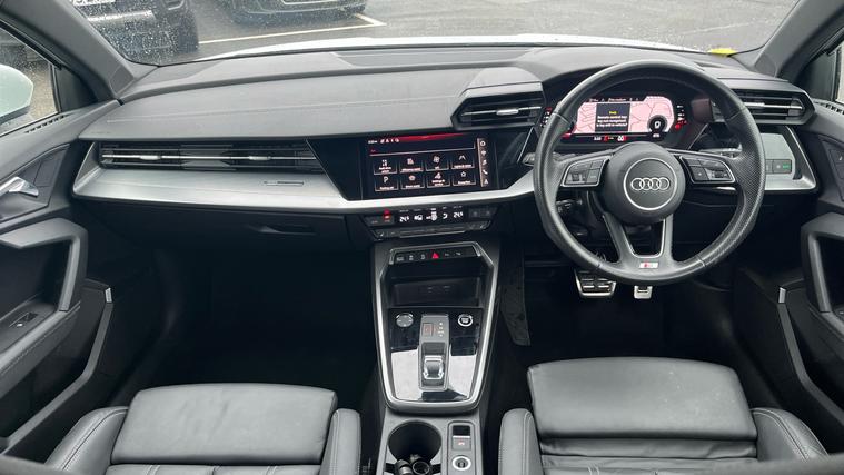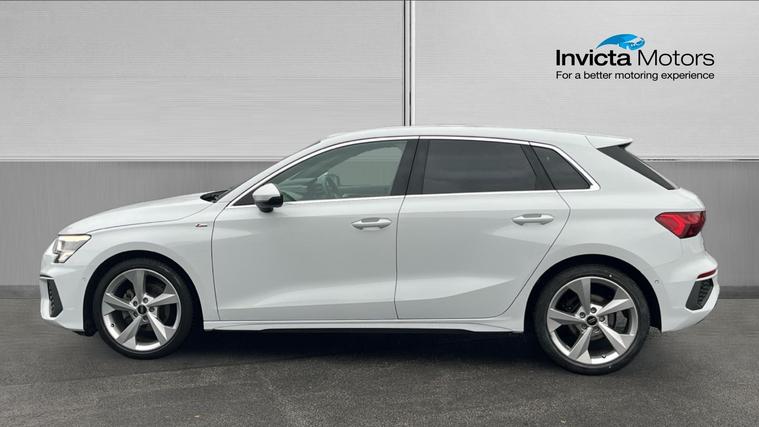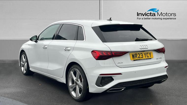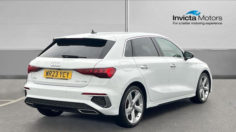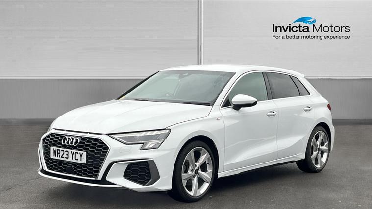 Features Include Comfort And Sound Pack, Front And Rear Parking Sensors, Touch Screen Navigation and Hill Start Assist. Refined, dynamic, and unmistakably Audi this 2023 Audi A3 S Line 30 TFSI MHEV S Tronic in stunning Glacier White Metallic perfectly blends sharp styling with cutting-edge mild-hybrid technology. Designed to turn heads and engineered for driving pleasure, it delivers premium performance and everyday practicality in one beautifully crafted package. Under the bonnet, you'll find Audi's responsive 1.0-litre 30 TFSI petrol engine paired with mild-hybrid efficiency and the smooth S Tronic automatic transmission. Offering 110 PS of refined power, it delivers effortless acceleration and whisper-quiet cruising all while achieving an impressive up to 54 mpg (combined). The mild-hybrid system recovers energy during braking, giving you improved efficiency and seamless stop/start transitions. Finished in sleek Glacier White, this A3 S Line stands out with its confident, athletic stance. The bold honeycomb grille, sharp LED lighting, and S Line body styling complete with sportier bumpers and side skirts exude sophistication and intent. Sitting proudly on 18-inch diamond-cut alloy wheels, it looks every bit the modern premium hatchback. Inside, the cabin is pure Audi minimalist, high-tech, and beautifully finished. The S Line sports seats wrapped in high-quality cloth and leatherette, flat-bottom steering wheel, and ambient interior lighting create an atmosphere of modern sportiness. The 10.1-inch MMI touchscreen and Digital Virtual Cockpit put all essential information and entertainment right at your fingertips, seamlessly blending luxury with innovation.
