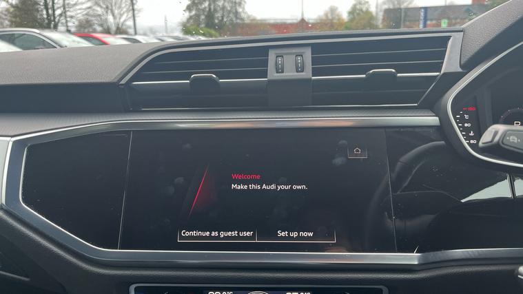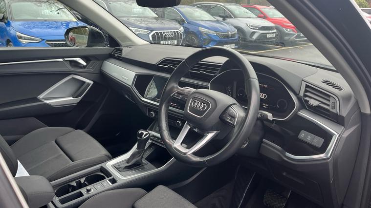 Features Include Virtual Cockpit, Apple CarPlay And Android Auto, Dual Zone Climate, Electric Tailgate and Hill Start Assist. Elegant, refined, and full of advanced technology, this 2021 Audi Q3 35 TFSI Sport S Tronic in Mythos Black Metallic delivers everything you'd expect from Audi, premium quality, confident performance, and timeless design. Perfectly balancing practicality and sophistication, it's an SUV built to impress from every angle. Power comes from a responsive 1.5-litre TFSI petrol engine producing 150 PS, paired with Audi's smooth S Tronic automatic gearbox. Thanks to cylinder-on-demand technology, it delivers strong performance with excellent efficiency, achieving up to 44 mpg (combined) while maintaining the quiet refinement Audi is known for. Finished in striking Mythos Black, this Q3 radiates sophistication with its sharp lines, bold Singleframe grille, and premium 17-inch alloy wheels. The Sport trim enhances its presence with refined design details, LED headlights, and subtle chrome accents a perfect blend of elegance and practicality.
