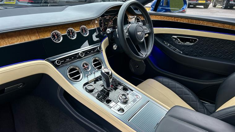 Stunning example Continental GT 6.0 W12 finished in Sequin Blue with Mulliner Driving Specification and low miles. Mulliner Driving Specification with Polished Alloy Wheel, Centenary Specification, Touring Specification, Front Seat Comfort Specification, Bright Chromed Lower Bumper Matrix Style Grille, Heated, Single Tone, 3 Spoke, Indented Hide Trimmed Steering Wheel, Deep Pile Overmats - Front, First Aid Kit and Warning Triangle, Naim for Bentley, Bentley Rotating Display, Inductive Phone Charger, Contrast Stitching, Decorative Insert for Console - Cotes de Geneve, Dual Finish - Tamo Ash over Piano Black, Fresh Air Intake and Air Ionizer, Diamond Knurling, Mood Lighting Specification, Standard Brakes with Red Painted Callipers.