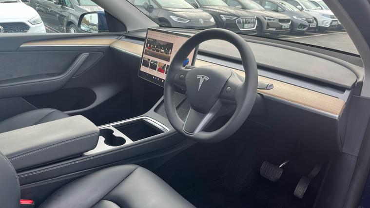 Features Include Premium Audio System, Fulll LED Headlights, Power Tailgate And Keyless Entry, Wireless Phone Charging And Hill Start Assist. Innovative, luxurious, and all-electric this 2022 Tesla Model Y Long Range AWD in breathtaking Deep Blue Metallic represents the pinnacle of modern driving. Combining cutting-edge technology, premium comfort, and exhilarating all-wheel-drive performance, it's the SUV that redefines what electric mobility can be. Powered by dual electric motors, the Model Y Long Range delivers an impressive 384 bhp through Tesla's renowned All-Wheel Drive system, ensuring instant acceleration, precise traction, and smooth power in all conditions. It achieves a remarkable range of up to 331 miles (WLTP) on a single charge and can sprint from 060 mph in just 4.8 seconds blending thrilling performance with everyday practicality. Finished in elegant Deep Blue Metallic, this Model Y's aerodynamic design and minimalist lines exude sophistication. The bold stance, panoramic glass roof, and 19-inch Gemini alloy wheels make a striking statement, while the flush door handles and clean profile hint at Tesla's obsession with efficiency and form. Step inside, and you're greeted by Tesla's signature minimalist cabin, featuring a single 15-inch touchscreen that controls virtually every function from navigation to climate and entertainment. The premium interior offers heated seats throughout, a premium audio system, and a spacious cabin with best-in-class storage and rear legroom.