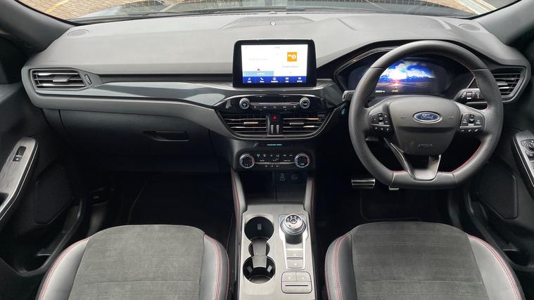 A stunning self charging Kuga ST-Line Edition finished in the metallic Agate Black. Never lose your way again with the inbuilt Sat Nav, plus this Kuga is fitted with Cruise Control, Automatic Headlights, Rain Sensing Wipers, Front and Rear Parking Sensors with Rear Camera, Power Tailgate, Ford SYNC3 Bluetooth, One-Touch Electric Windows, a Heated Windscreen and a DAB Radio with USB in. Qualifies for Warranty4Life*.