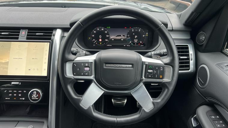 A fantastic SUV with seating for up to 7, equipped with a great range of fantastic features and optional extras, and presented here in a stunning specification. Our Discovery Dynamic HSE is finished in Santorini Black matched with 22-inch Style 5124 wheels in Gloss Black, over Ebony Windsor leather interior, and comes equipped with some brilliant features and optional extras, including, 20-way Heated and Cooled front seats with Driver Memory function, Four-zone Climate Control, Meridian Sound System, Privacy Glass, Sliding front and Fixed rear Panoramic Roof, Matrix LED Headlights with Signature DRL, Keyless Entry, Adaptive Cruise Control, Lane Keep Assist, Blind Spot Assist, Front and Rear Parking Aids, 3D Surround Camera, Apple CarPlay and Android Auto, DAB Radio, Wireless Device Charging, Front Centre Console Refrigerator Compartment, Electrically Deployable Tow Bar, and much more. Call today for more information.