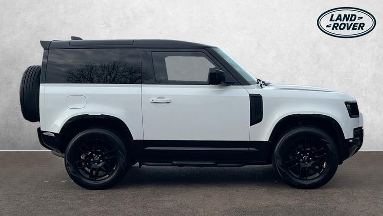 This fantastic Defender 90 is presented here in a great specification with plenty of useful extras, and sporting incredible driving capabilities. This Defender is ready to take on any adventure. Our Defender 90 X-Dynamic SE is finished in Fuji White matched with the Extended Black Exterior Pack and 19-inch Style 6010 wheels in Gloss Black, over Ebony Resist interior, and comes equipped with some brilliant features and optional extras, including, 12-way Heated front seats with Memory function, Two-zone Climate Control, Meridian Sound System, Privacy Glass, Sliding Panoramic Roof, Premium LED Headlights with Signature DRL, Keyless Entry, Cruise Control and Speed Limiter, Lane Keep Assist, 360-degree Parking Aids, 3D Surround Camera, Apple CarPlay and Android Auto, DAB Radio, Fixed Side Steps, and much more. Call today for more information.