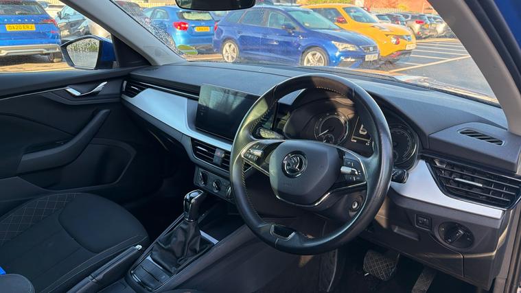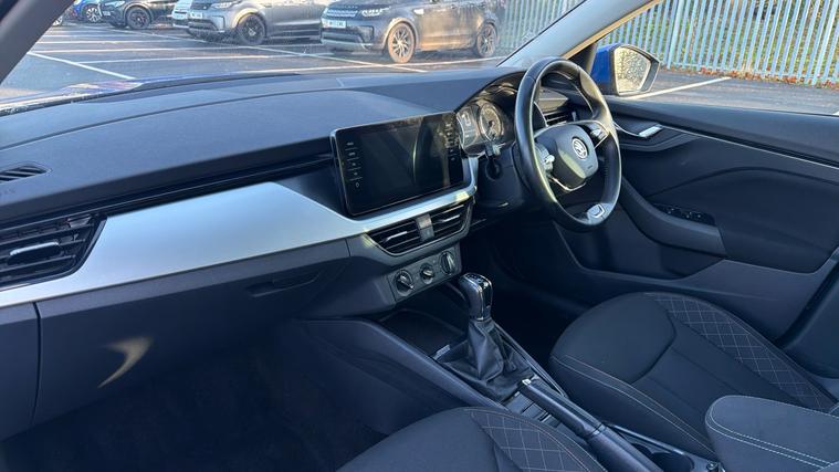 Features Include Wireless Apple CarPlay And Android Auto, Rear Parking Sensors, LED headlights, Cruise Control With Speed Limiter And Hill Start Assist. Confidence, efficiency, and modern design come together in this superb 2022 Skoda Kamiq 1.0 TSI 110 SE Drive DSG, finished in the vibrant and eye-catching Energy Blue. As Skoda's compact crossover, the Kamiq offers a perfect blend of practicality, premium comfort, and advanced technology making it an ideal choice for families, commuters, or first-time SUV owners. Powered by Skoda's refined 1.0 TSI turbocharged petrol engine producing 110 PS, this Kamiq delivers smooth, eager performance while remaining impressively fuel-efficient. Paired with the 7-speed DSG automatic gearbox, it offers seamless gear changes and an effortless driving experience whether in urban traffic or out on the open road. The striking Energy Blue paintwork highlights the Kamiq's sharp lines, bold grille, and dynamic SUV proportions. Completing the look are smart 17-inch alloy wheels, LED lighting, and SE Drive detailing giving this model a fresh, premium road presence. Step inside and you'll immediately notice Skoda's focus on comfort and clever design. The spacious interior features high-quality materials, supportive seats, and a generous list of features, ensuring every journey is relaxed and enjoyable.