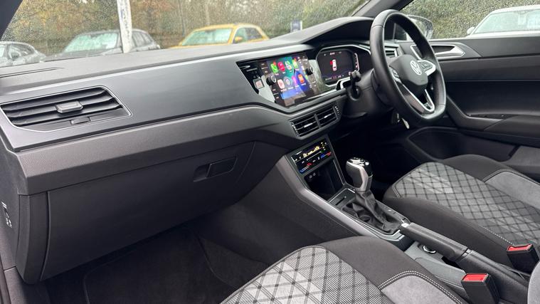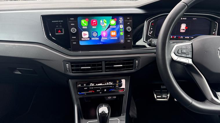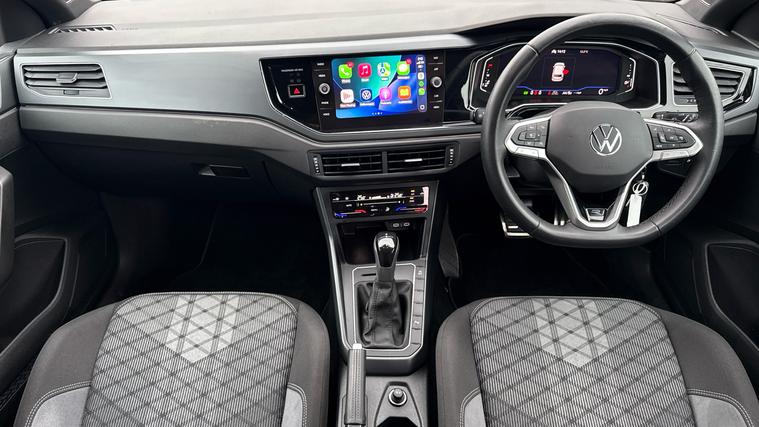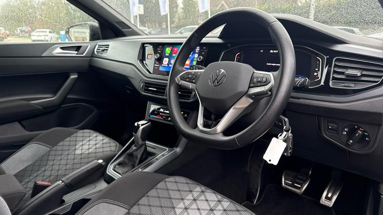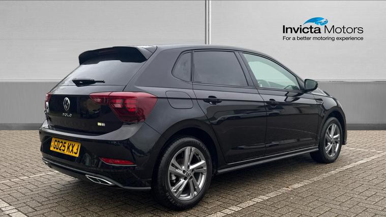 This 2025 Volkswagen Polo 1.0 R-Line Auto features Apple Carplay, Sat Nav, ECC, Sport Seats and Lane Assist! It has everything and more and is the perfect reliable car. Call to book a test drive. Invicta are pleased to offer this beautiful 2025 Volkswagen Polo 1.0 R-Line DSG Auto. This 1 Owner example looks superb in Black Pearl Metallic! Enjoy a safe journey thanks to VW's Adaptive Cruise Control and Lane Assist. Access your favourite apps such as Spotify, Google Maps and Whats App through Wireless Apple CarPlay and Android Auto. Stay updated and entertained with DAB Radio, while Bluetooth enables you to stay hands-free. Volkswagen prioritise convenience with Automatic Lights and Wipers, Power Folding Door Mirrors and Electric Windows. Enjoy premium comfort with Karoso R Line Sports Cloth Upholstery. Dual Zone Climate Control and Front Sport Seats complete the look. Call today to view and drive the VW Polo 1.0 TSi Petrol R-Line 5 Dr Auto!.