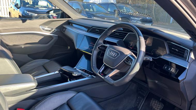Features Include Extended Twin Leather Pack, Privacy Glass, Black Cloth Headling, LED Matrix Headlights, Audi Virtual Cockpit, Reverse Camera And Sensors, Adaptive Cruise and Hill Start Assist. Introducing this exceptional 2022 Audi e-tron 230kW 50 Quattro Black Edition, finished in the striking and highly desirable Typhoon Grey. This premium all-electric SUV combines Audi's hallmark craftsmanship with cutting-edge EV engineering, delivering a driving experience that is smooth, powerful, and effortlessly refined. Powered by dual electric motors producing an impressive 230kW, the e-tron offers instant torque, confident acceleration, and the assured grip of Audi's legendary Quattro all-wheel drive system. Whether you're gliding through city streets or taking on long-distance motorway journeys, the e-tron remains whisper-quiet, composed, and comfortable. Its 71kWh battery pack provides strong real-world range and rapid-charging capability, making everyday electric ownership seamless and stress-free. The Black Edition specification further elevates this SUV, adding sleek dark styling accents, upgraded exterior details, and a premium interior atmosphere. Step inside to find Audi's sophisticated digital cockpit, dual touchscreens, plush materials, and advanced driver-assistance technologyall designed to make every journey feel modern, intuitive, and luxurious. Finished in Typhoon Grey, this e-tron has a bold yet elegant presence. The colour beautifully highlights its sculpted body lines and contrasts perfectly with the Black Edition exterior trim, giving it a distinctive and upscale look on the road.
