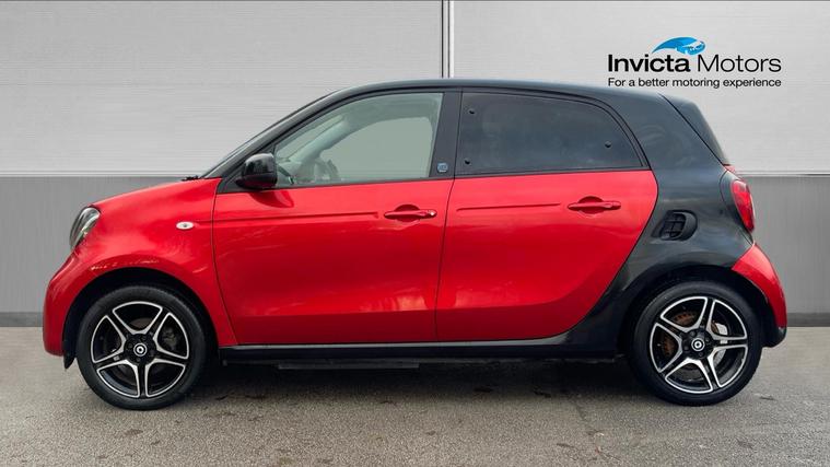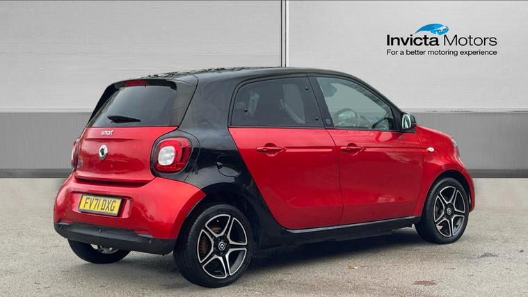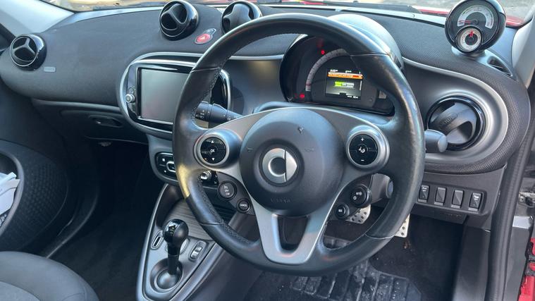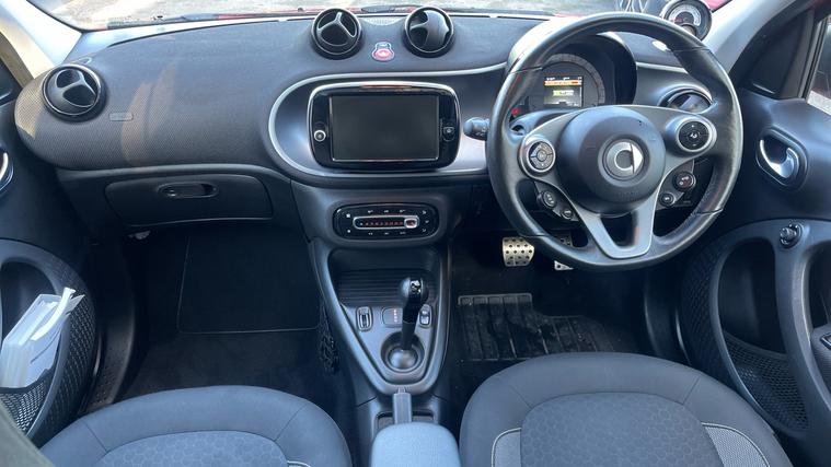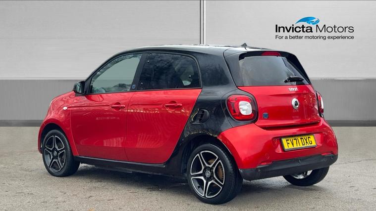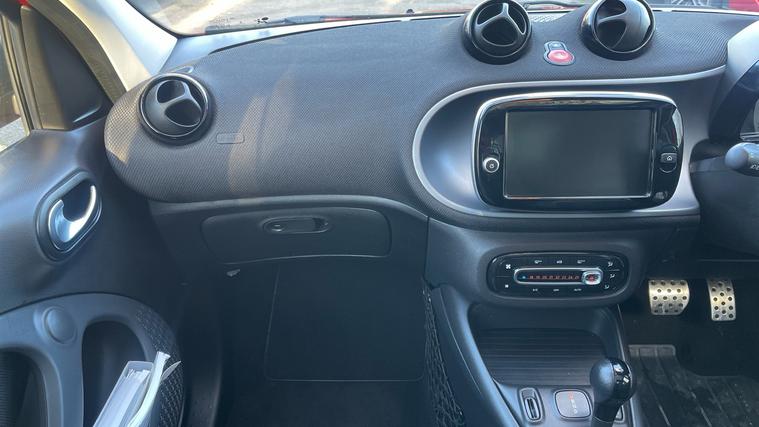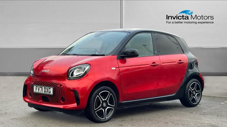 The 2021 Smart ForFour Premium gives you strong tech, heated comfort, and smart styling in a compact EV. Ideal for city driving without sacrificing features. The 2021 Smart ForFour EQ Premium is built for urban comfort and convenience, especially in electric form. It includes a high-resolution 8-inch touchscreen with navigation, DAB radio, Apple CarPlay/Android Auto, Bluetooth + USB connectivity, and digital instruments with battery status displays. You also get heated front seats, automatic climate control, a panoramic glass roof with sunblind, electric + heated door mirrors, rear parking sensors and a reversing camera. Exterior details include 16-inch 5-twin-spoke black alloy wheels, body-colour bumpers + door handles, tinted rear windows, LED daytime running lights, and a full-size tailgate. Safety and convenience are backed by Crosswind Assist, cruise control with variable speed limiter, ABS/EBD with brake assist, stability control, multiple airbags, and a 22 kW onboard charger for relatively fast AC charging. Despite its compact dimensions, it's well-packed with useful tech and style.