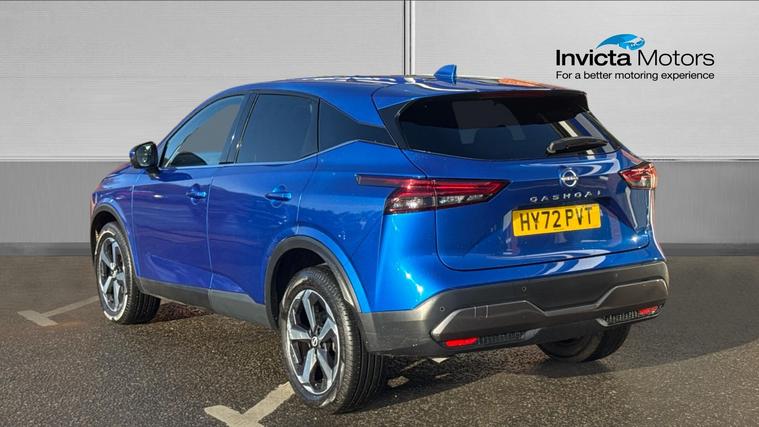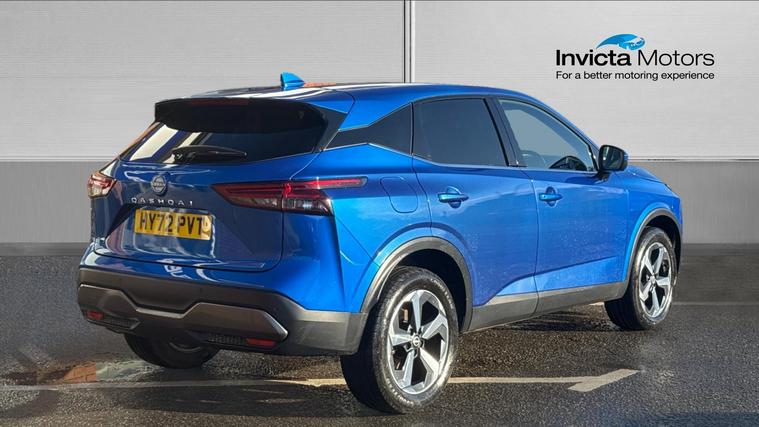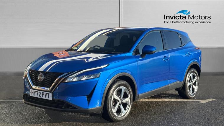 This Qashqai looks fantastic in Electric Blue Metallic. It is 1 owner with Full Service History. Features include Hybrid, DAB Radio, Collision Alert, Blind Spot Cameras. Experience the new era of Qashqai with the new shape 2022 72 plate Nissan Qashqai 1.3 DiG-T MH Hybrid 158hp N-Connecta 5dr Xtronic Auto. Sleekly defined with privacy glass and iconic diamond cut alloys, this hybrid petrol beauty turns heads effortlessly. Step inside and enjoy climate control comfort, Touchscreen Infotainment, Sat Nav while Apple CarPlay and Android Auto keep you seamlessly connected. With DAB Radio and convenient USB ports, your journey becomes as dynamic as you are. This is the new shape of innovation, crafted for those who dare to redefine their drive. Discover the cutting-edge design and smart technology of the Nissan Qashqai today here at Invicta Subaru.