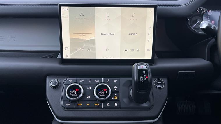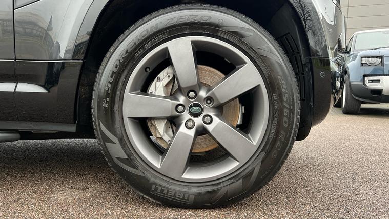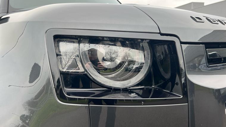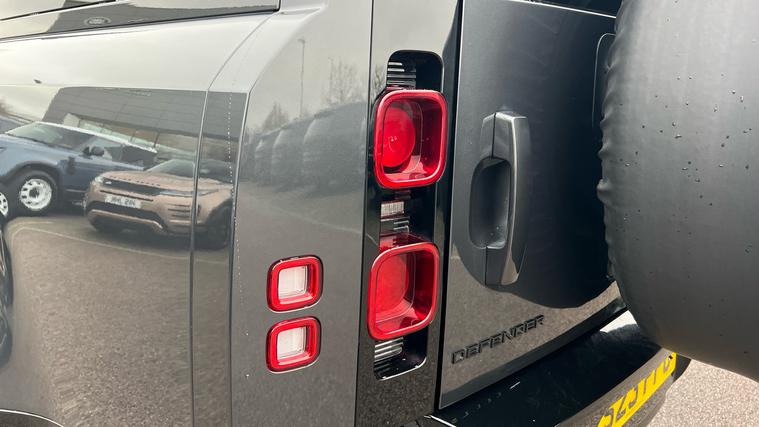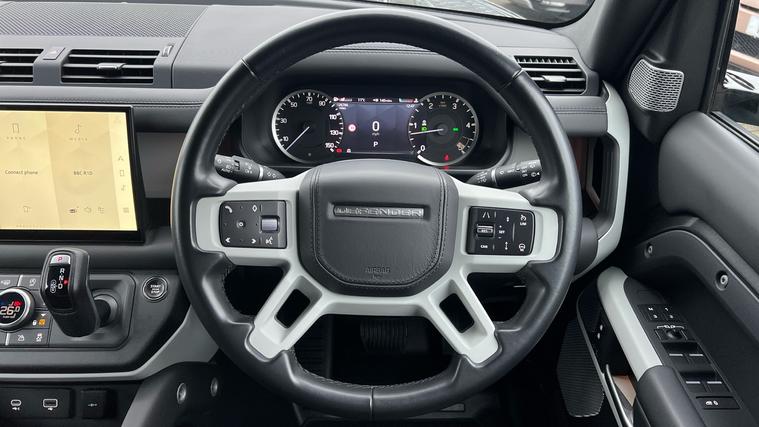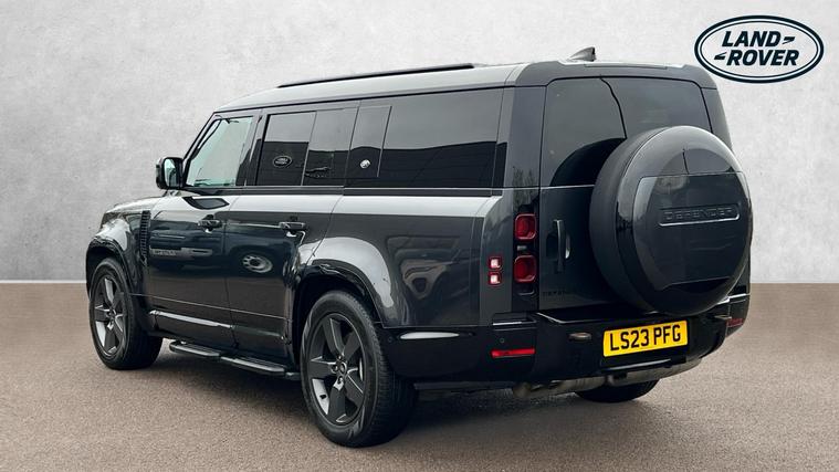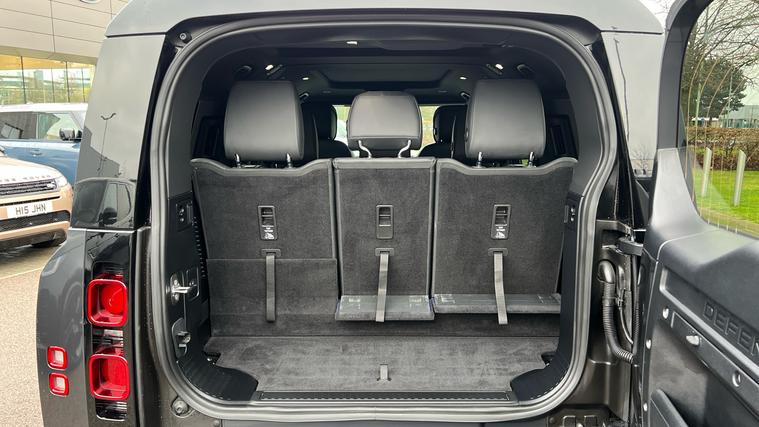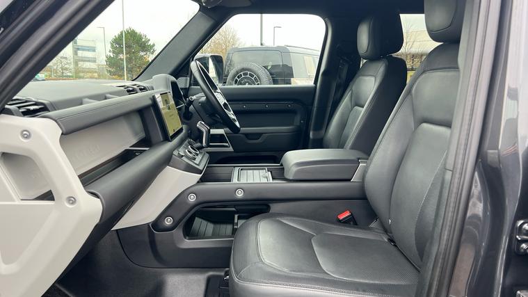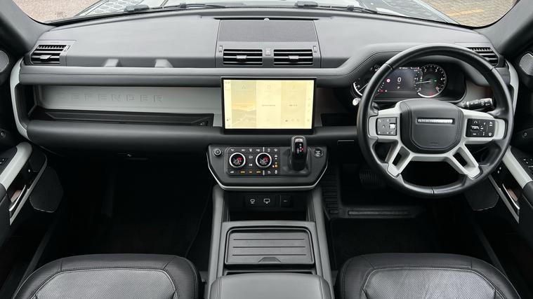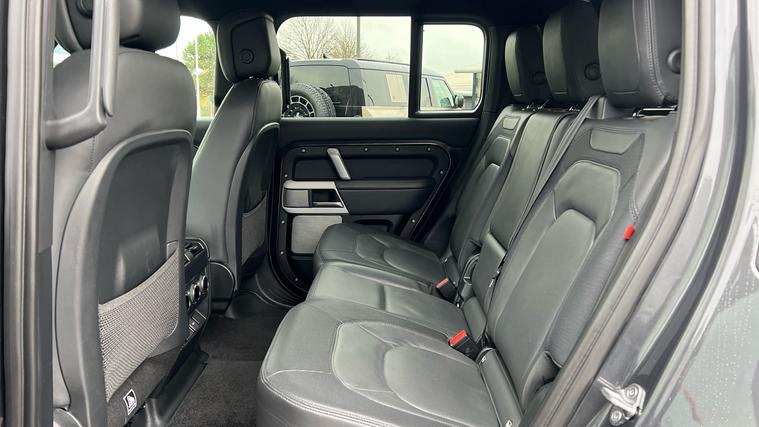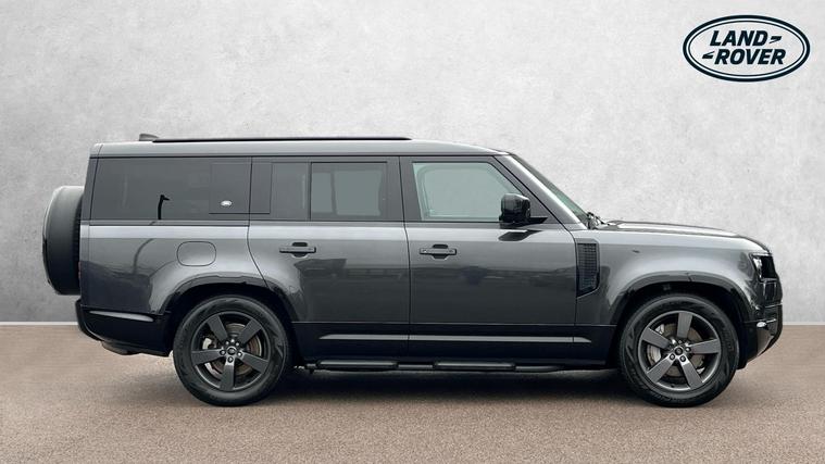 Our Defender 130 seats up to 8 passengers, and comes equipped with a brilliant range of features and optional extras. Call today for more information. Our Defender 130 X-Dynamic HSE is finished in Carpathian Grey matched with the Extended Black Exterior Pack and 20-inch Style 5098 wheels in Satin Dark Grey, over Ebony Windsor leather interior, and comes equipped with some brilliant features and optional extras, including, 14-way Heated and Cooled front seats with Memory function, Four-zone Climate Control, Meridian Surround Sound System, Privacy Glass, Sliding Panoramic Roof, Premium LED Headlights with Signature DRL, Keyless Entry, Adaptive Cruise Control, Lane Keep Assist, Blind Spot Assist, 360-degree Parking Aids, 3D Surround Camera, Apple CarPlay and Android Auto, DAB Radio, Wireless Device Charging, Front Centre Console Refrigerator Compartment, Fixed Side Steps, and much more. Call today for more information.